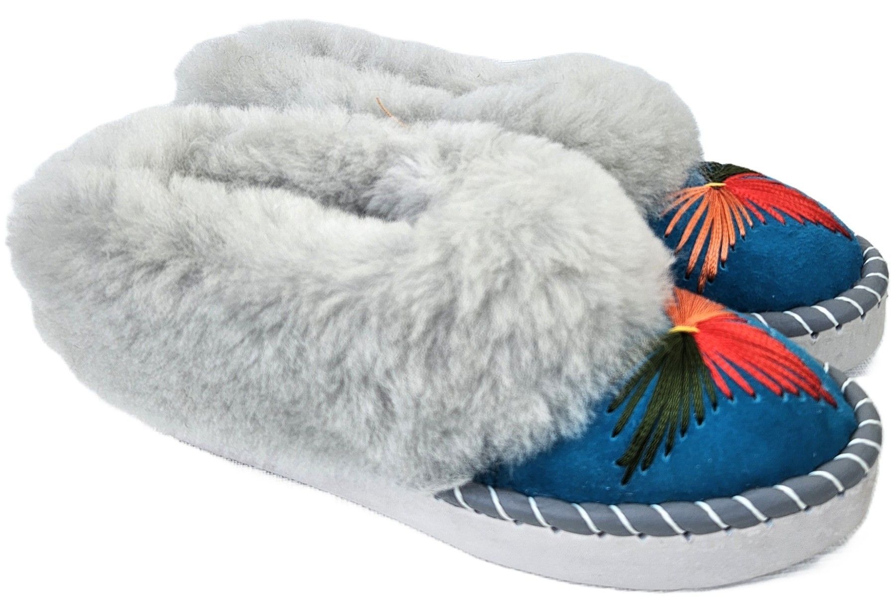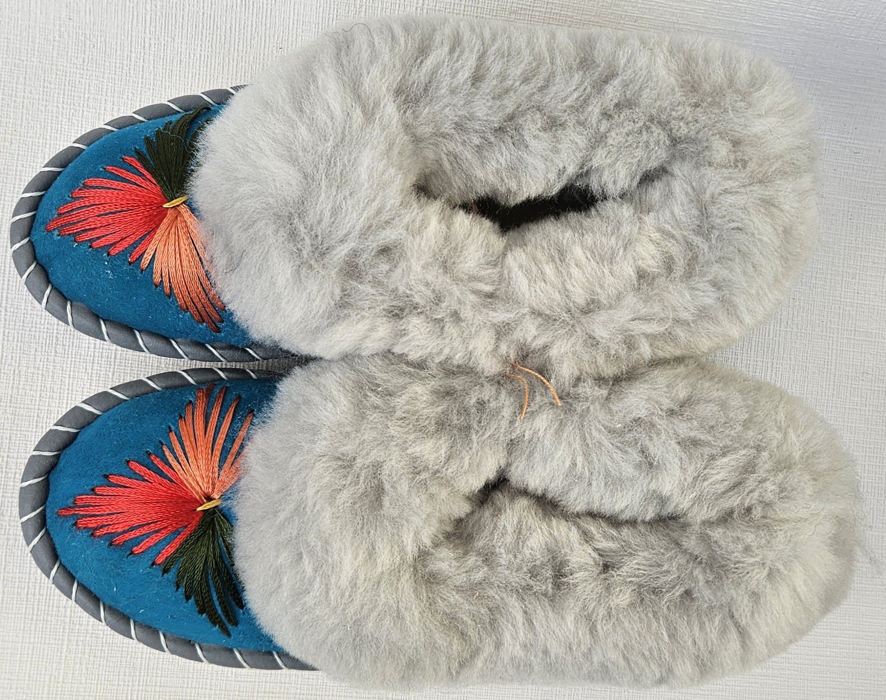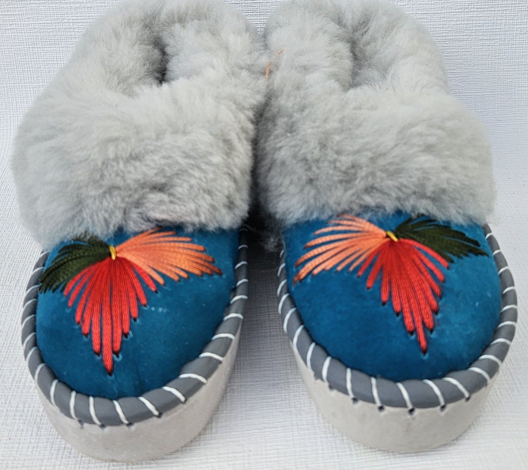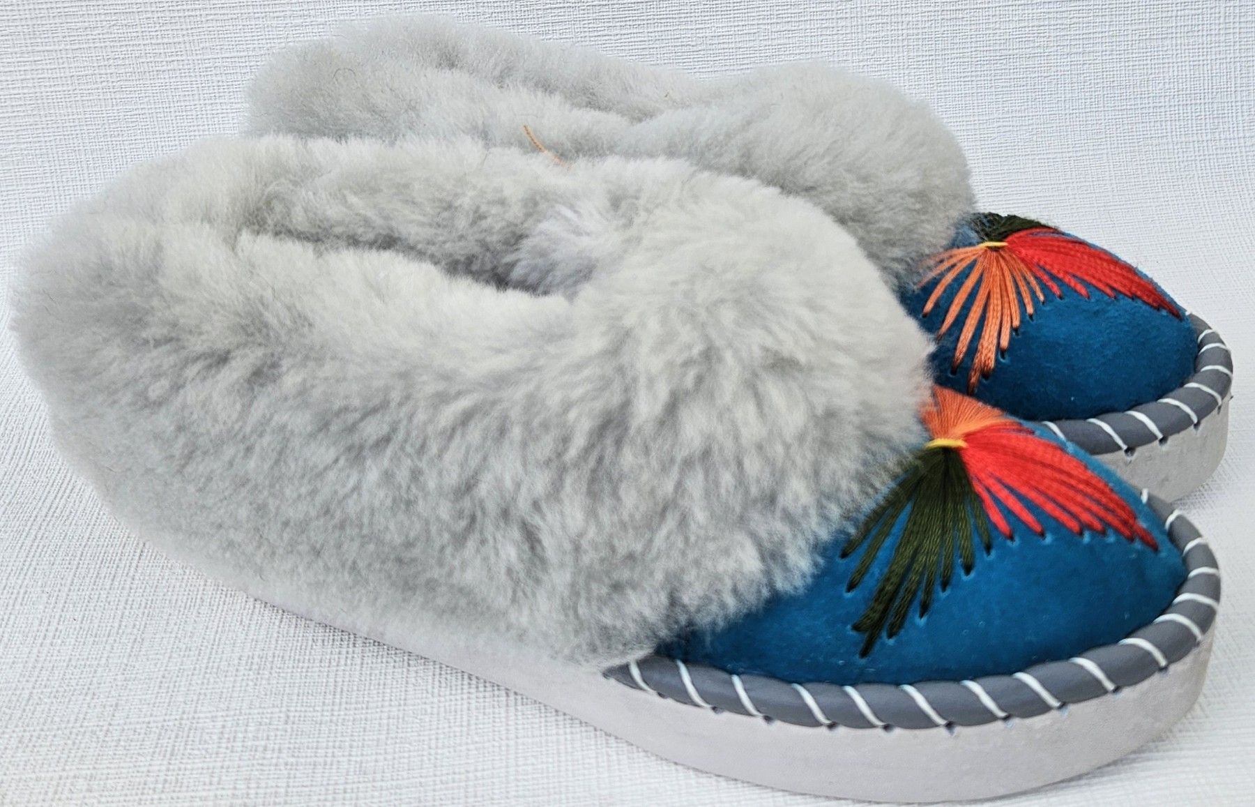 Lammfell Warme Hausschuhe Mokassin Gr.38 NEU, Schaffell/ -leder Handarbeit * BLAU*25