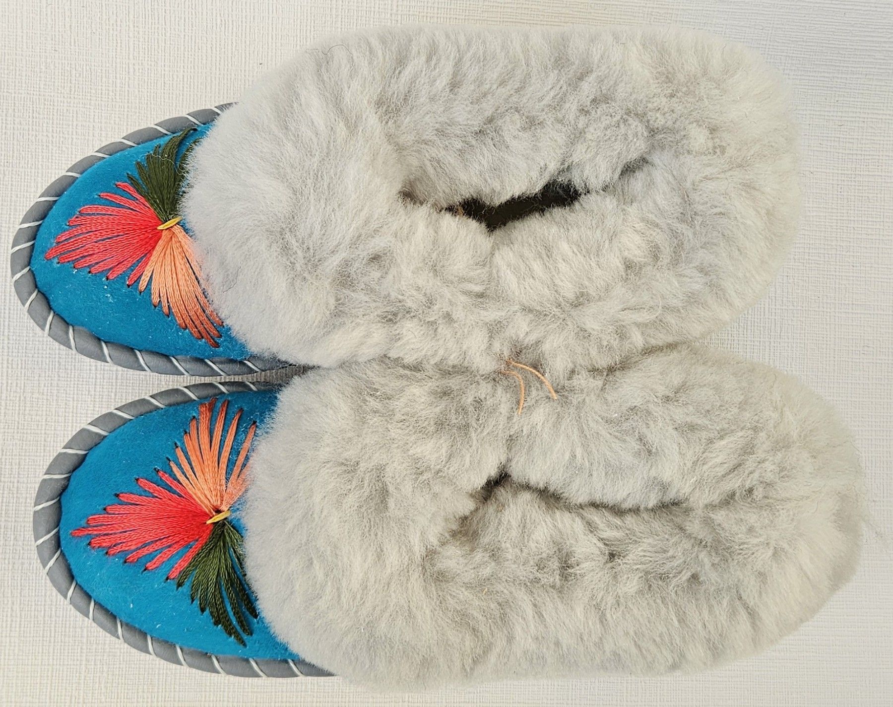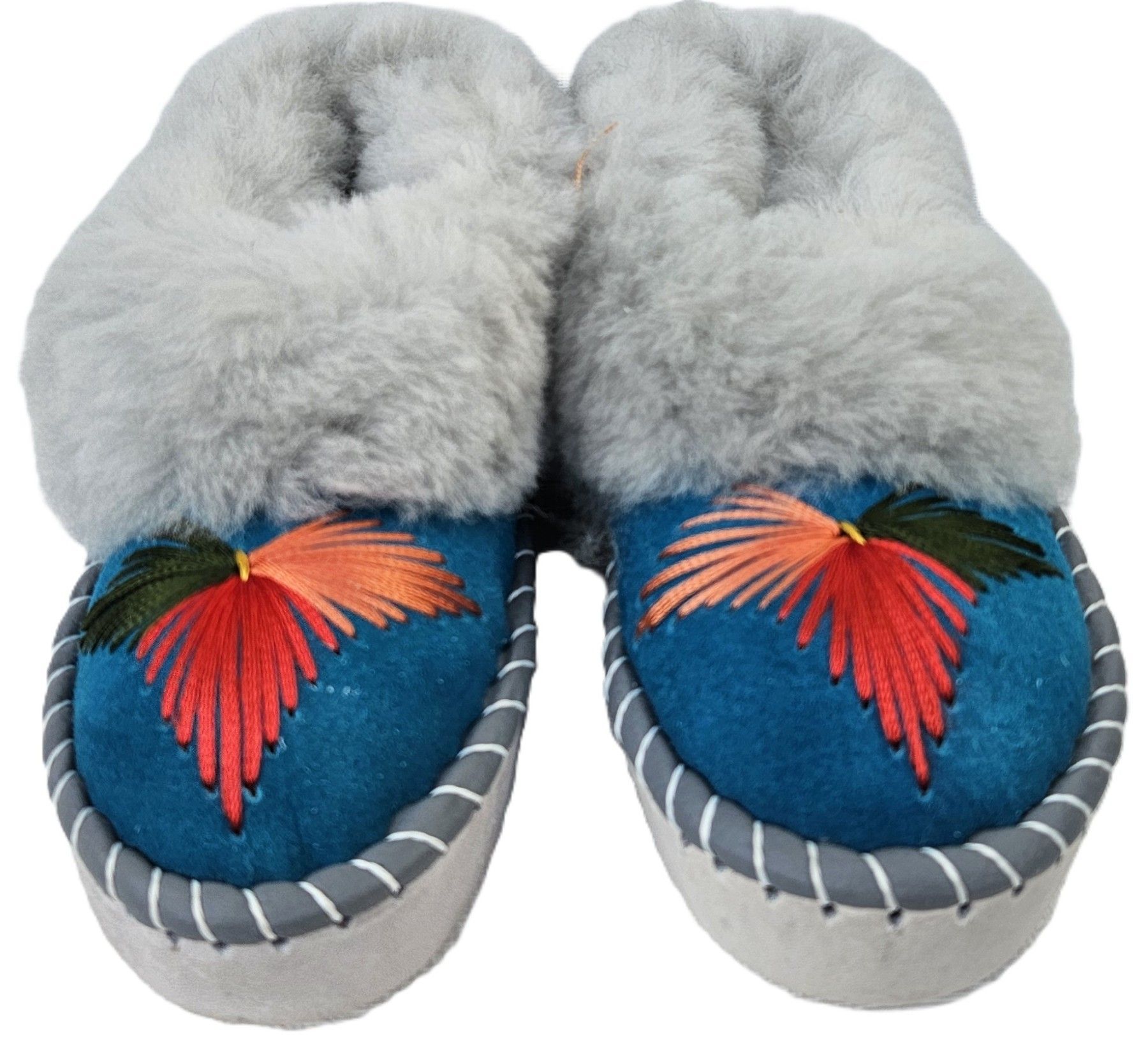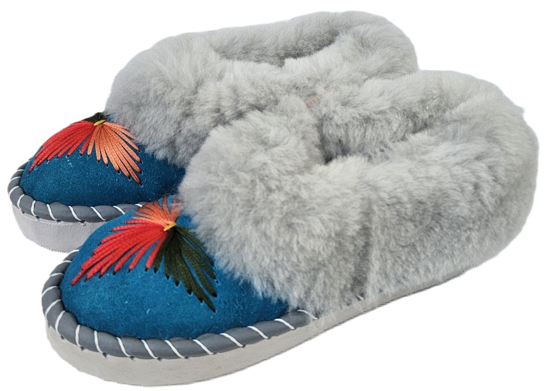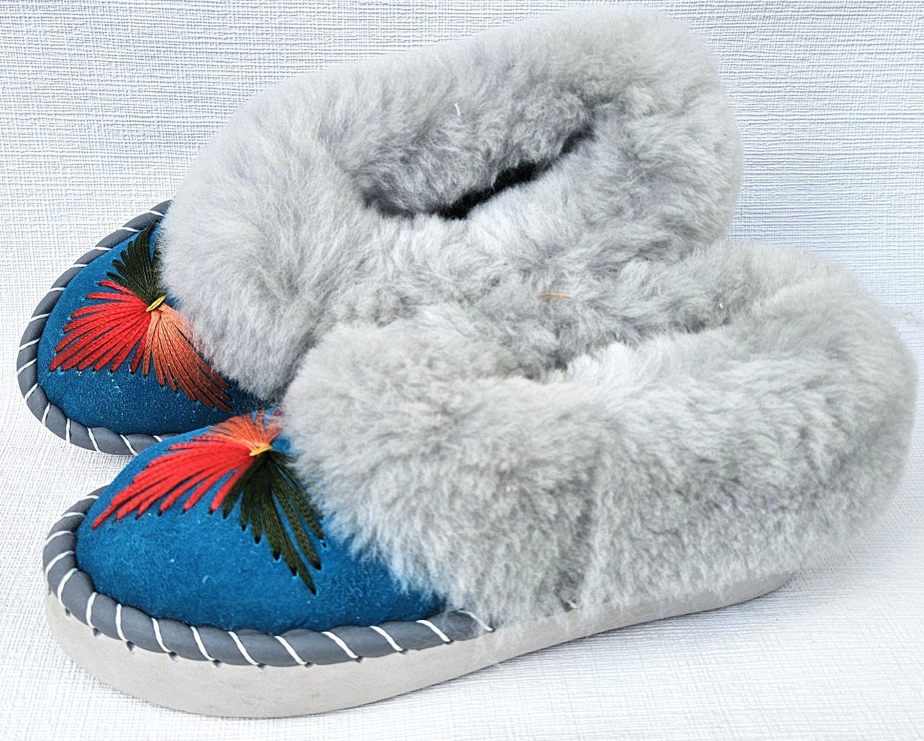 Lammfell Warme Hausschuhe Mokassin Gr.38 NEU, Schaffell/ -leder Handarbeit * BLAU*25