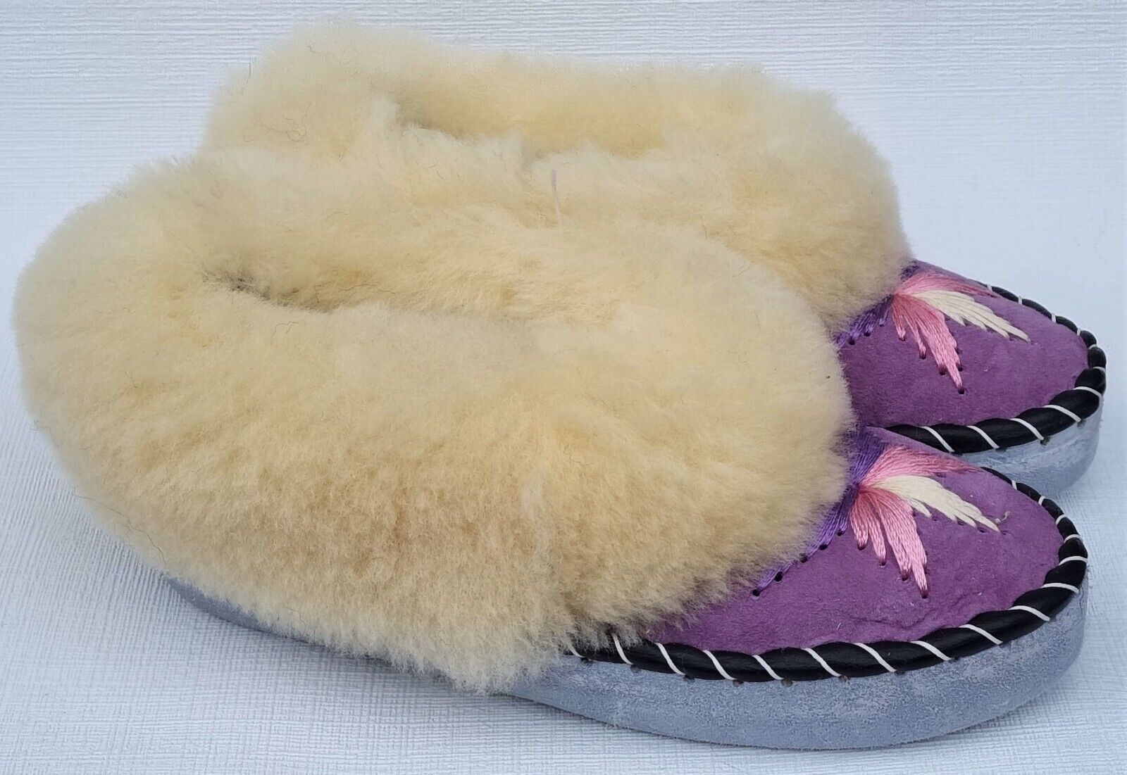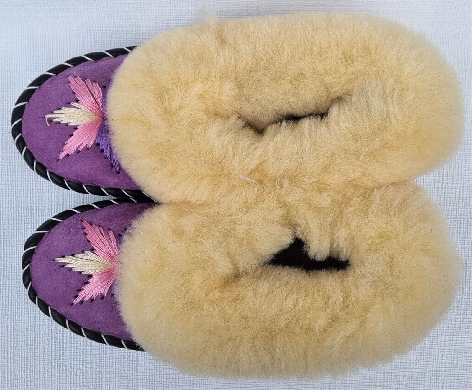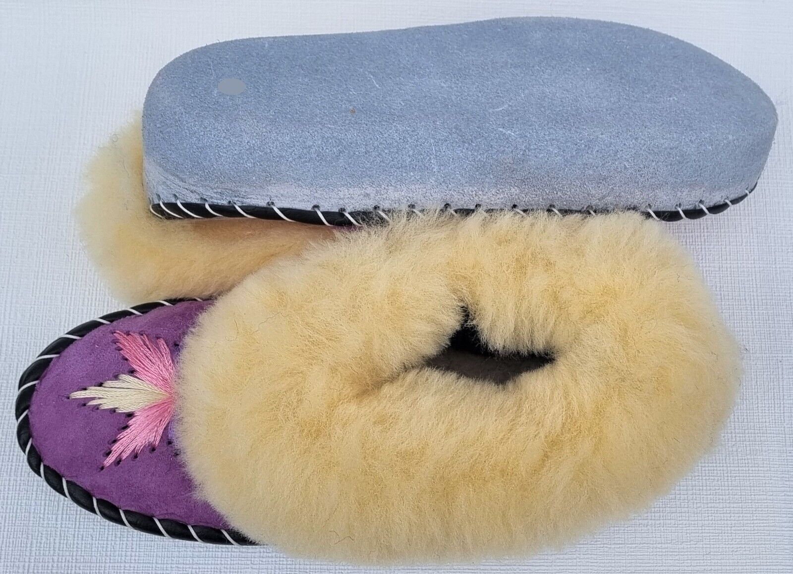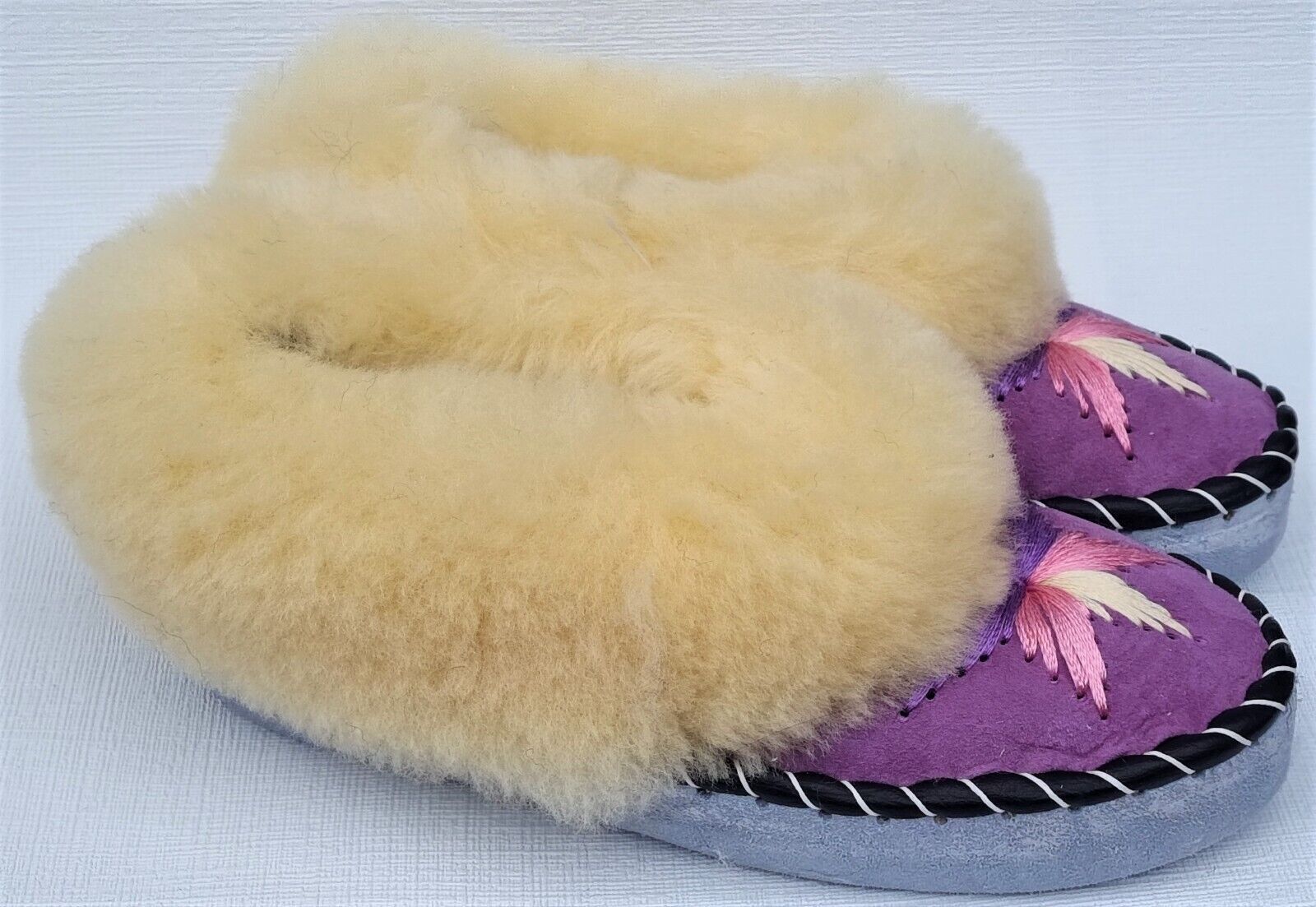 Lammfell Warme Hausschuhe Mokassin Gr.38 NEU, Schaffell/ -leder Handarbeit * LILA*