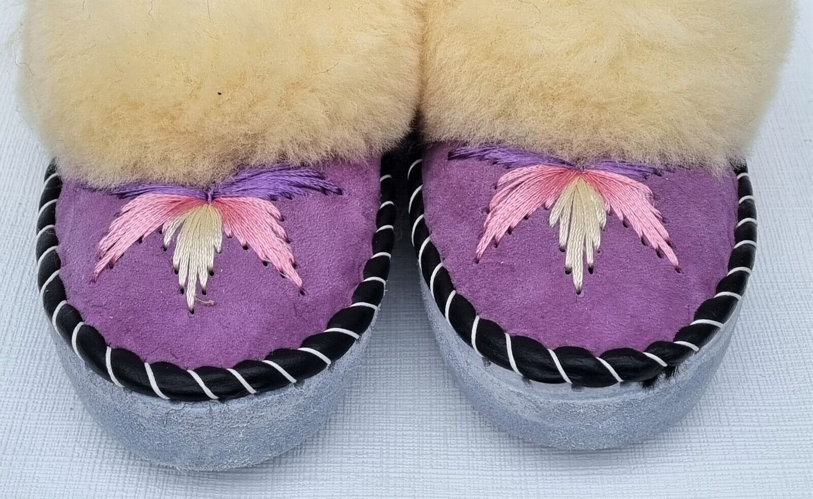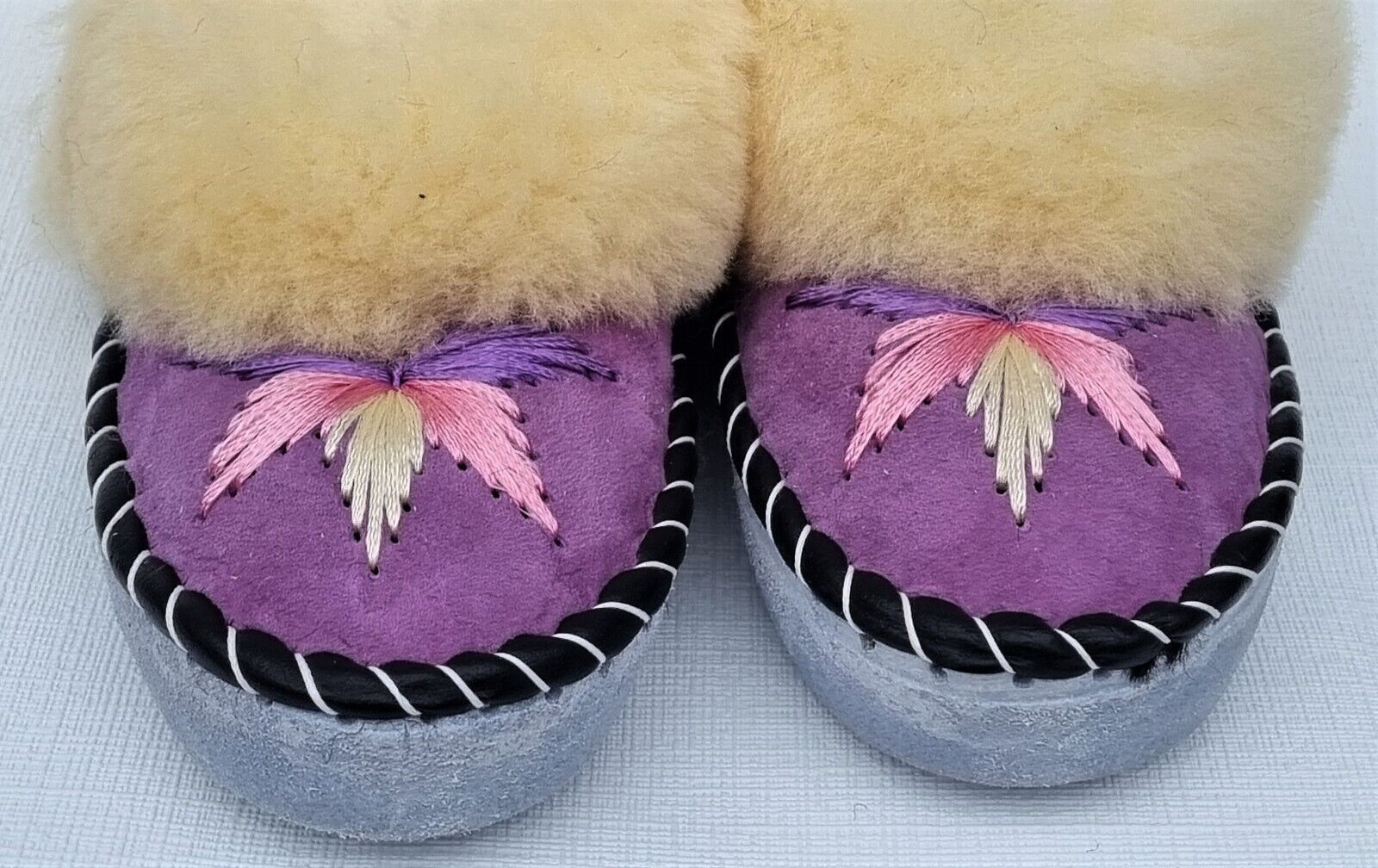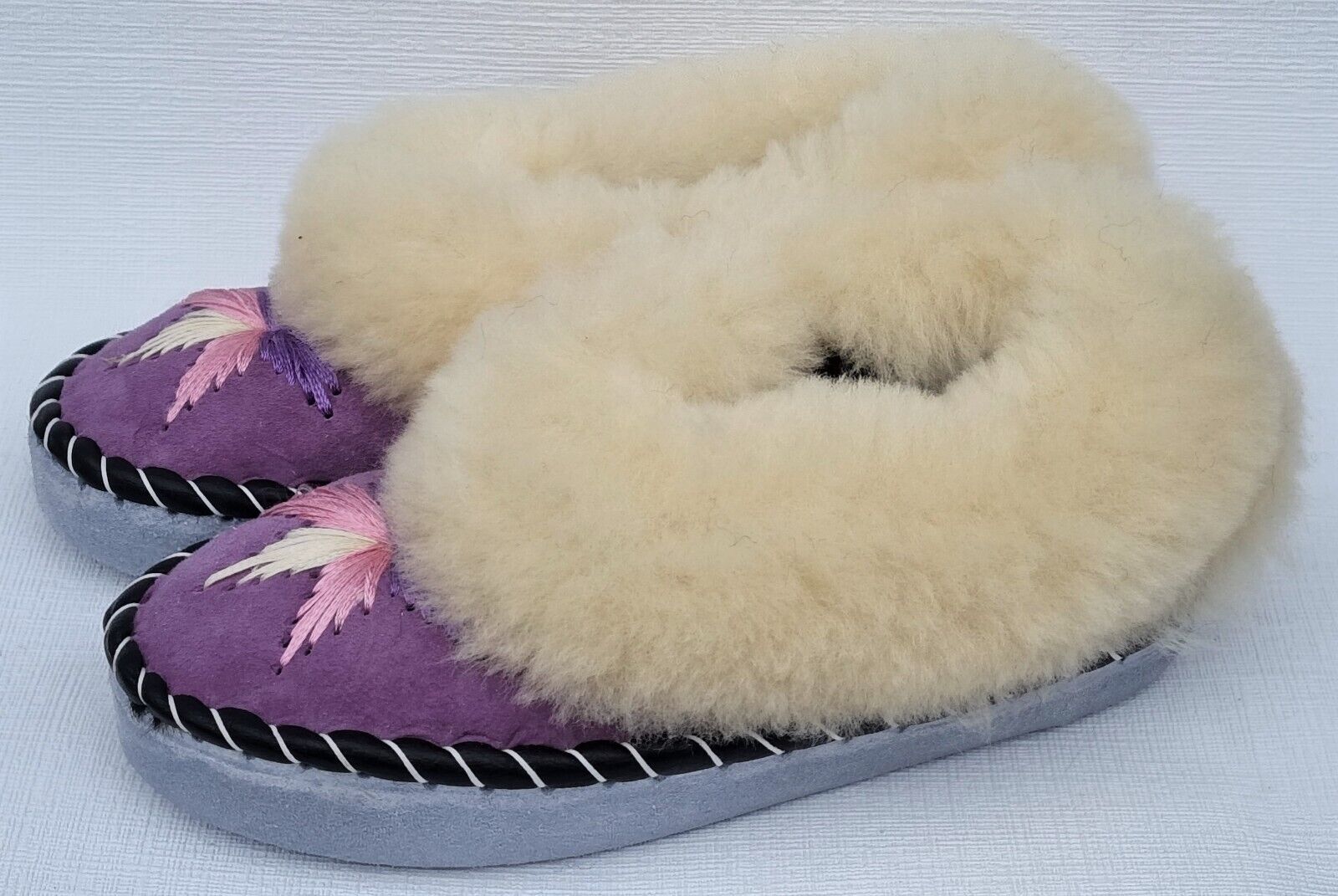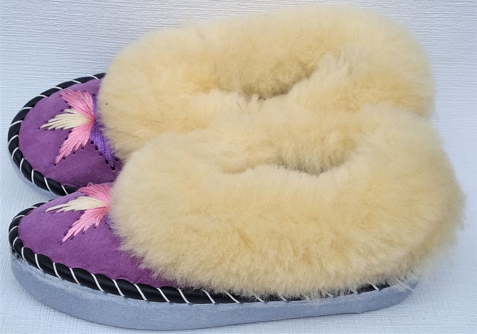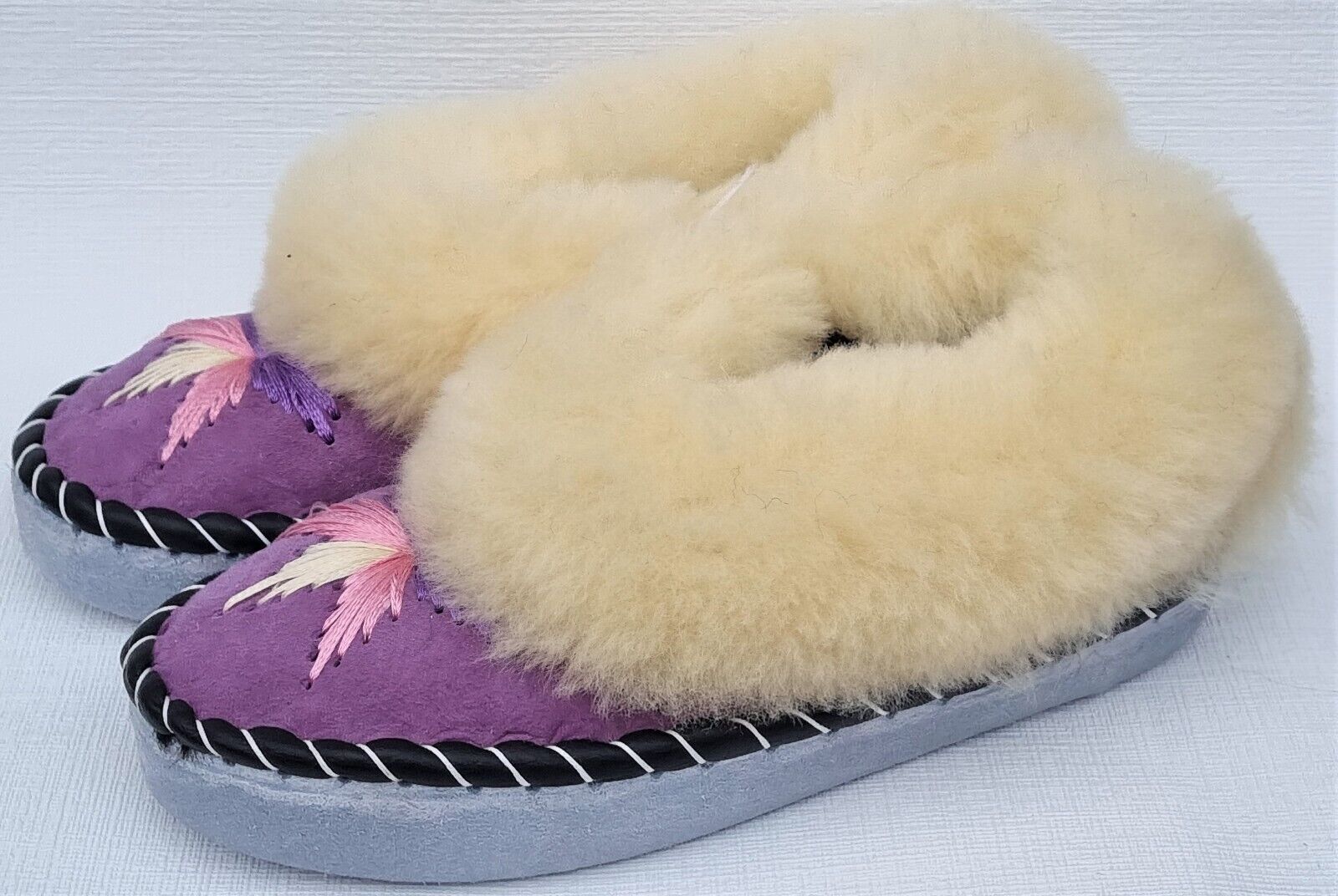 Lammfell Warme Hausschuhe Mokassin Gr.38 NEU, Schaffell/ -leder Handarbeit * LILA*