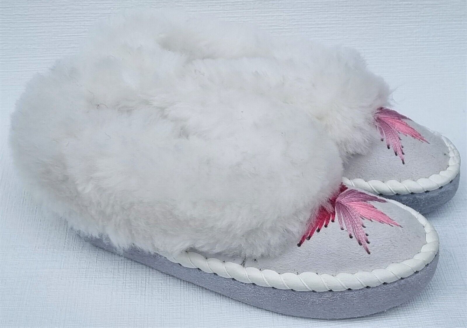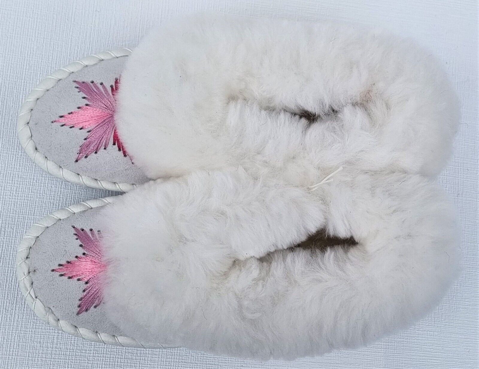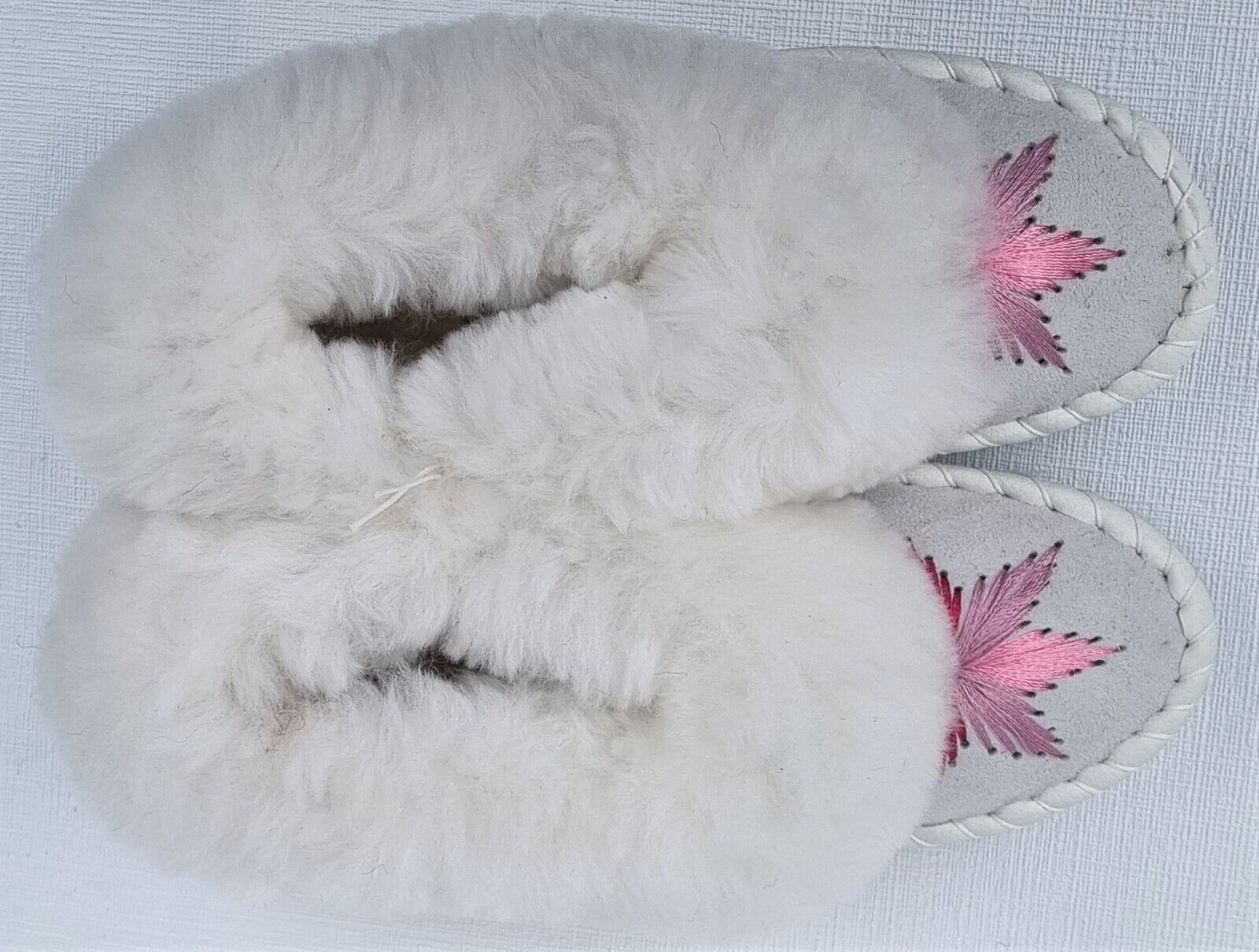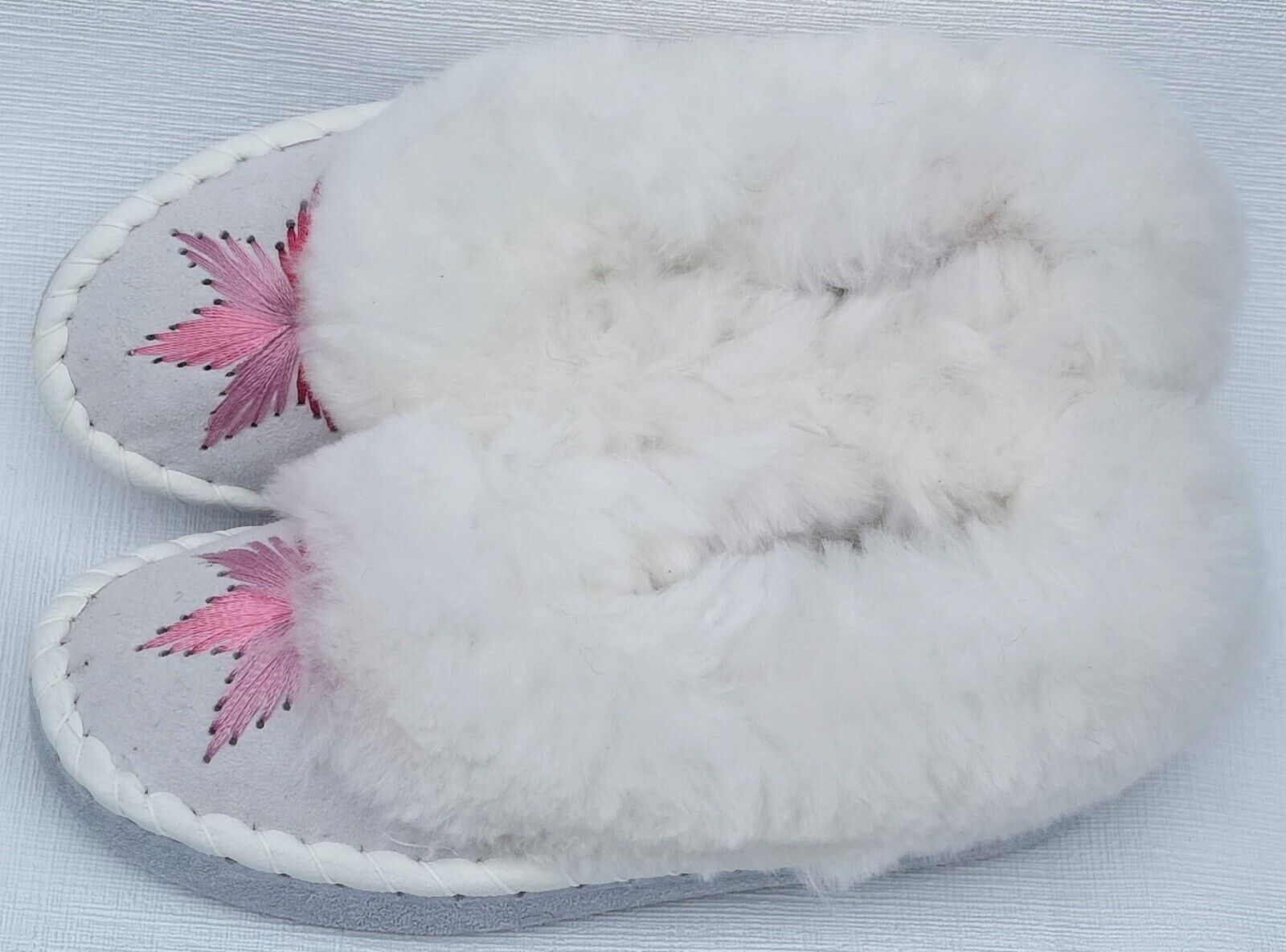 Lammfell Warme Hausschuhe Mokassin Gr.39 NEU, Schaffell/ -leder Handarbeit Weiß-2