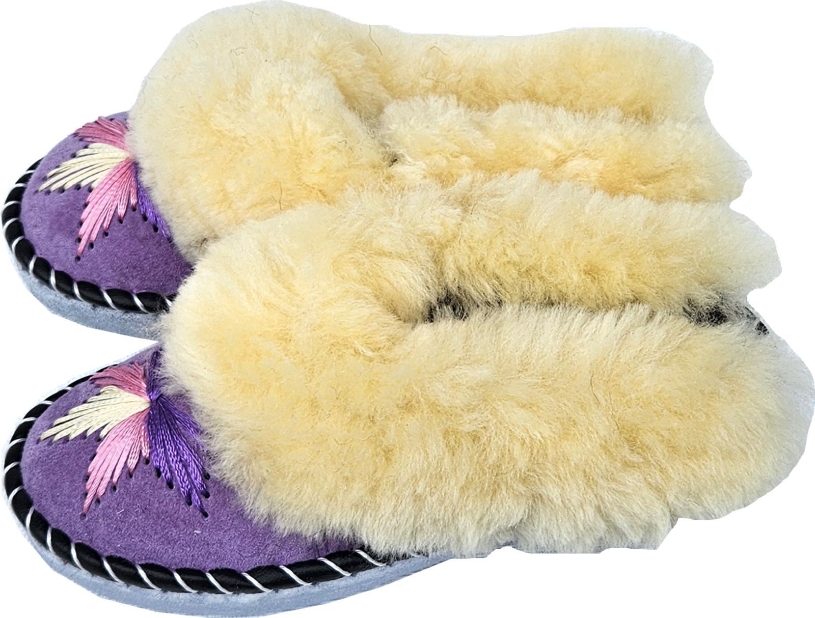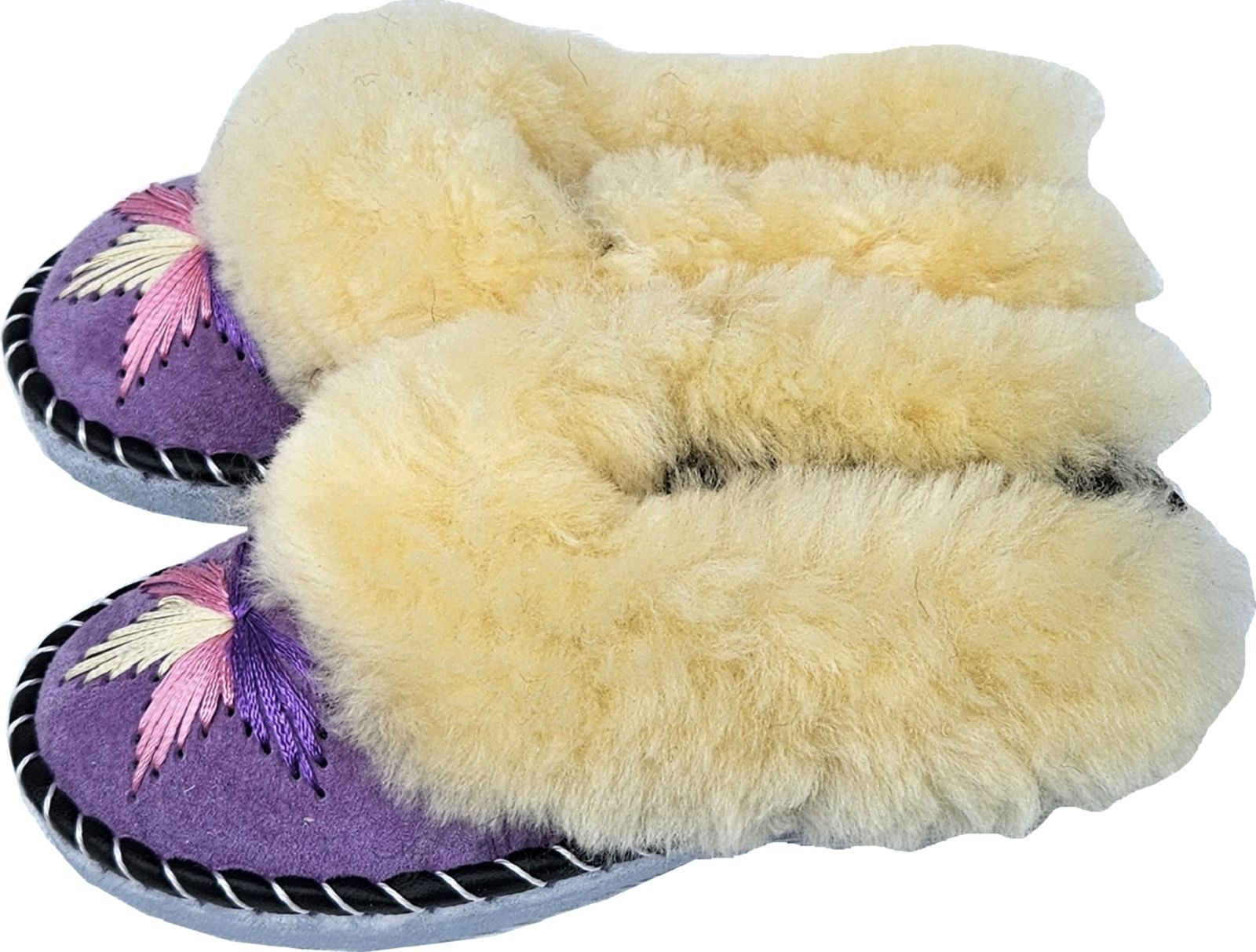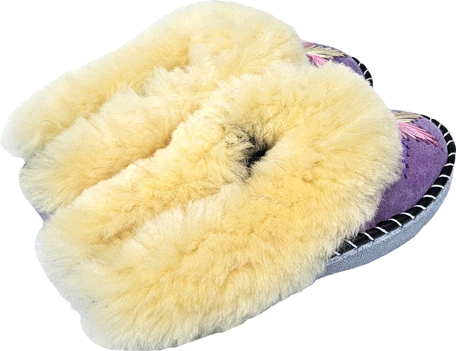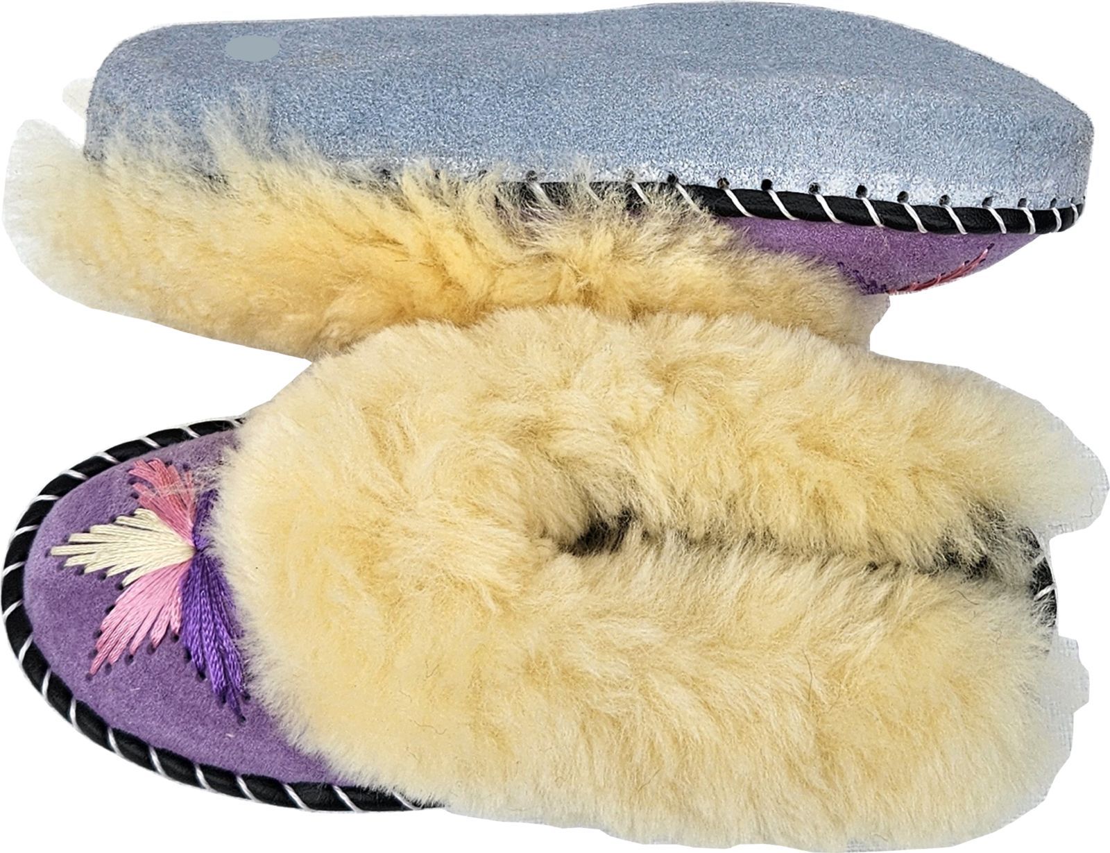 Lammfell Warme Latschen Mules Hausschuhe Gr.42 NEU, Schaffell/ -leder Handarbeit Lila
