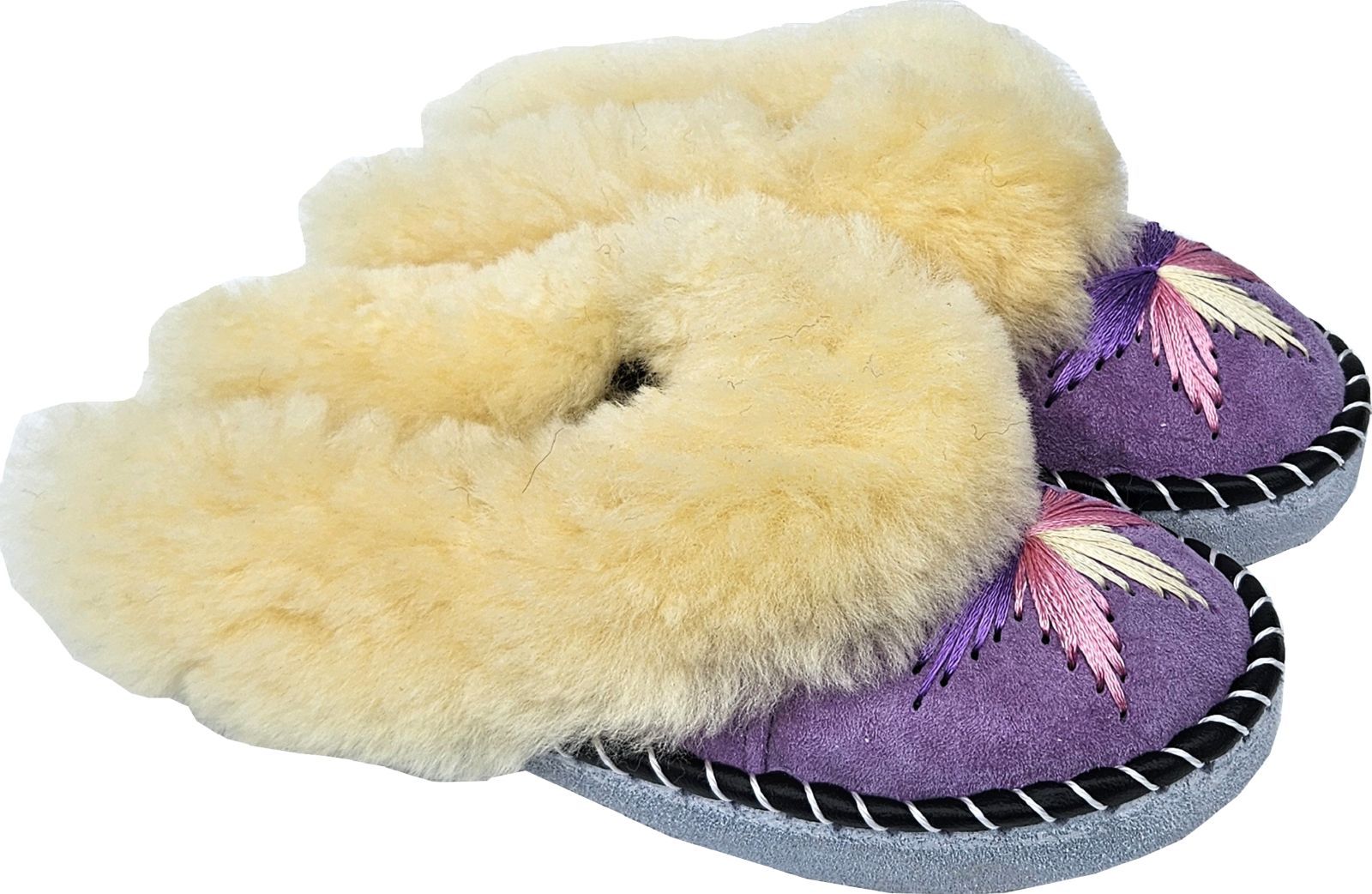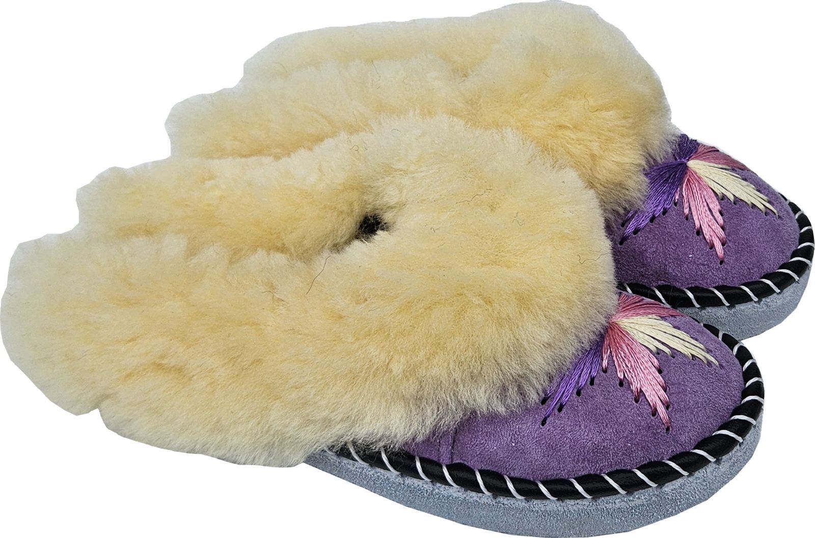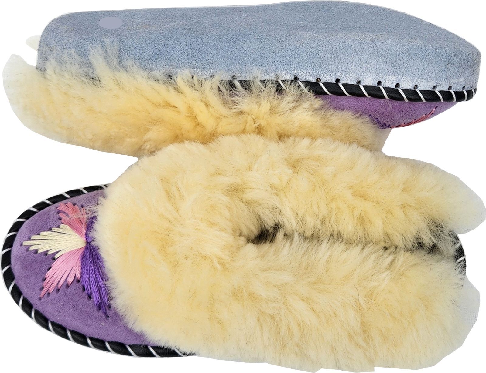 Lammfell Warme Latschen Mules Hausschuhe Gr.42 NEU, Schaffell/ -leder Handarbeit Lila