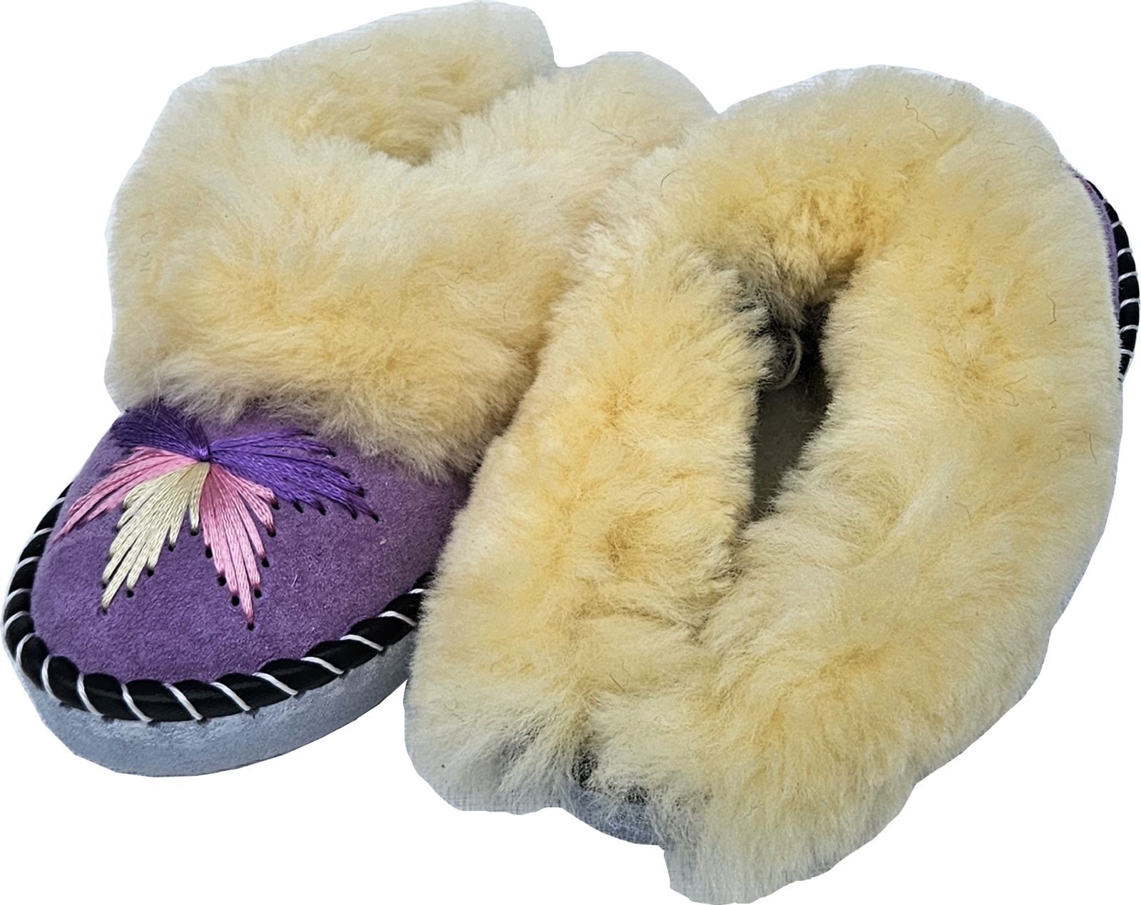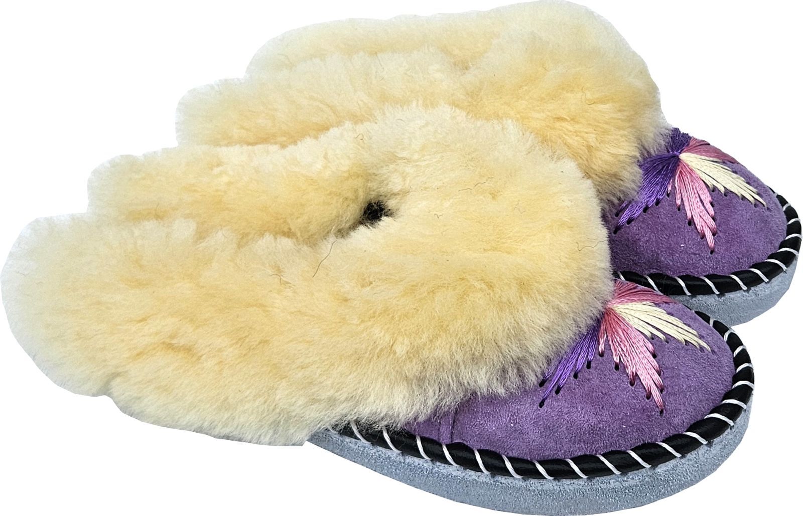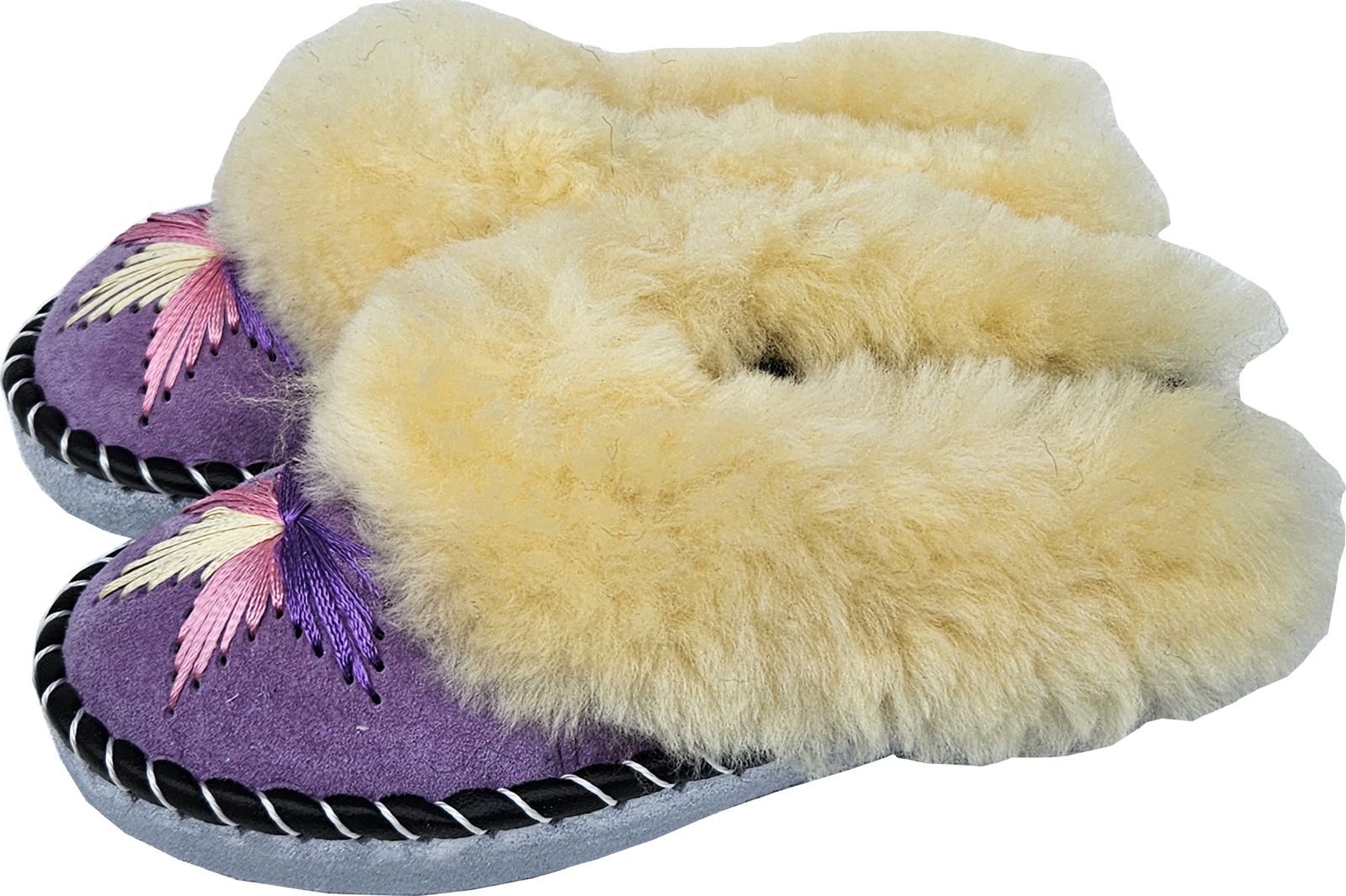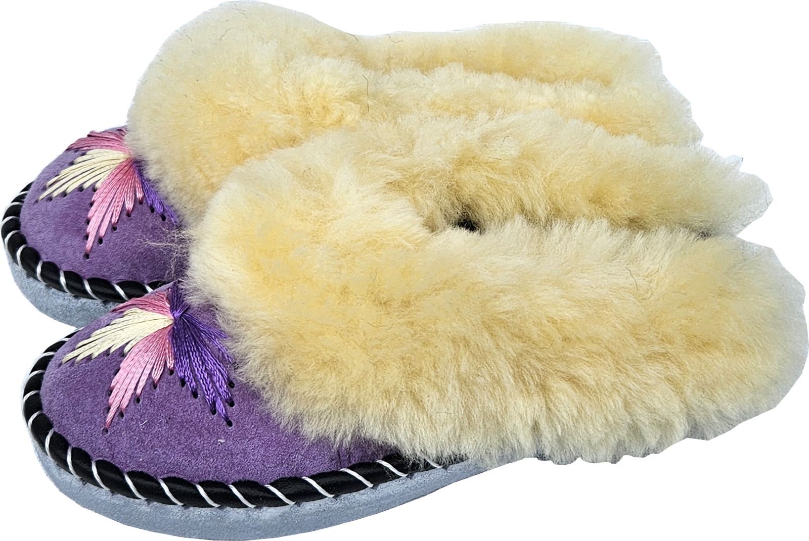 Lammfell Warme Latschen Mules Hausschuhe Gr.42 NEU, Schaffell/ -leder Handarbeit Lila