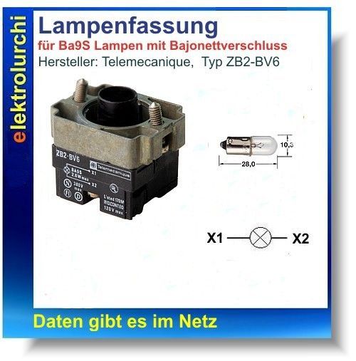 Sie bieten hier auf folgenden Artikel 1 Stück Lampenfassung Telemecanique ZB2-BV6, 120VAC, DC max für Ba9s,, Frontbefestigung Ausführung: für Lampen mit Ba9s Sockel Spannung: 120V AC DC Montageart: Frontbefestigung Anschlussart: Schraubanschluss Höhe: 30mm Hersteller: Telemecanique Hersteller Artike