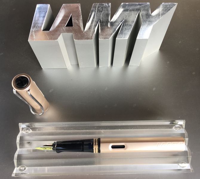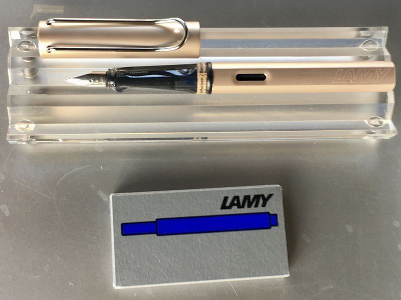Lamy Al-Star Füllfederhalter Cosmic Special Edition 2021 Auch als Kugelschreiber bei uns erhältlich Auf Wunsch auch andere Patronenfarben (Päckchen) erhältlich. Schreiben Sie uns hierzu einfach an! Produktdetails: Aluminium, apricot - rosa eloxiert Metallclip Stahlfeder poliert ergonomisches Griffst