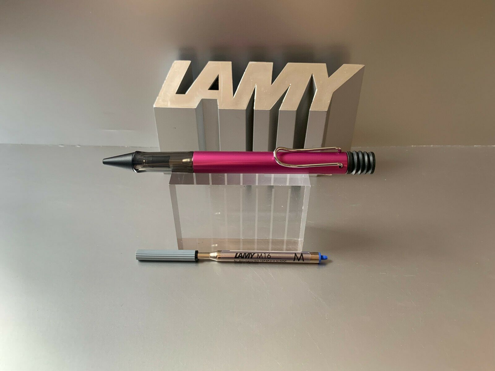 Lamy Al-Star Kugelschreiber Vibrant Pink Special Edition Auch als Füllfederhalter, Tintenroller bei uns erhältlich Produktdetails: Aluminium, vibrant pink eloxiert Metallclip ergonomisches Griffstück aus transparentem Kunststoff Schreibstärke: M (medium) Schreibfarbe: schwarz nachfüllbar mit M16 Lam