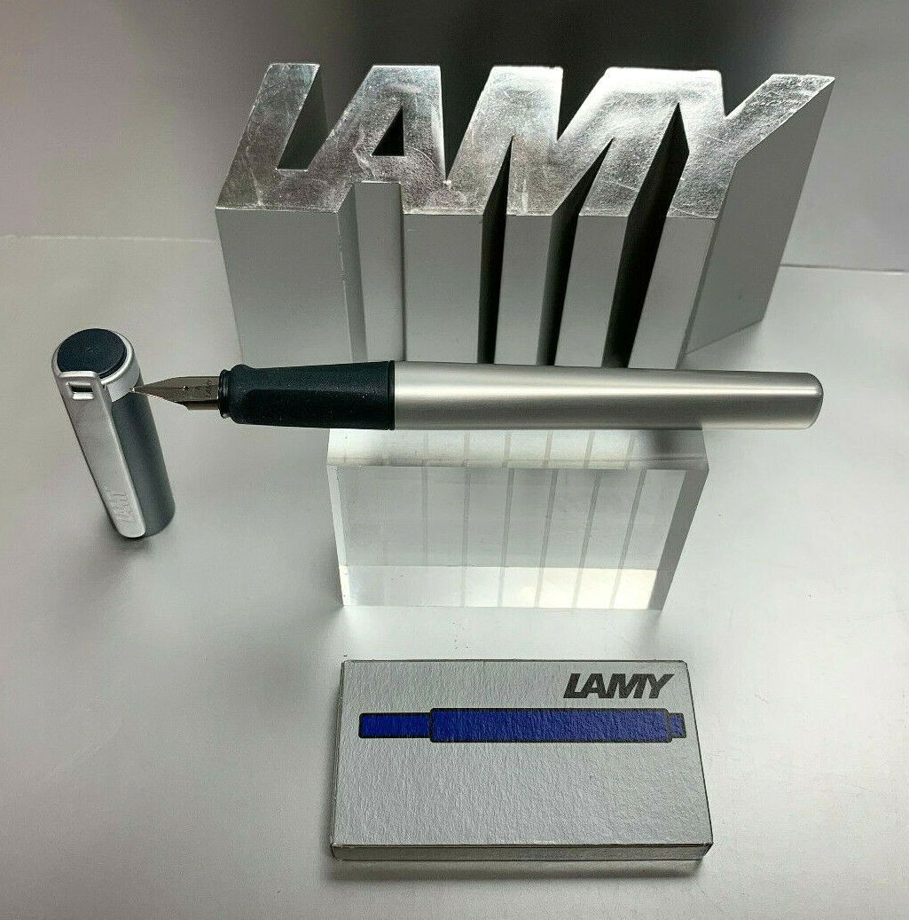 Lamy nexx Füllfederhalter Auf Wunsch auch andere Patronenfarben (Päckchen) erhältlich. Schreiben Sie uns hierzu einfach an! Produktdetails: Aluminium natur eloxiert Kappe mit Metallclip: anthrazit Stahlfeder poliert rutschfestes Griffstück nachfüllbar mit T10 Lamy Tintenpatrone vorbereitet für Konve