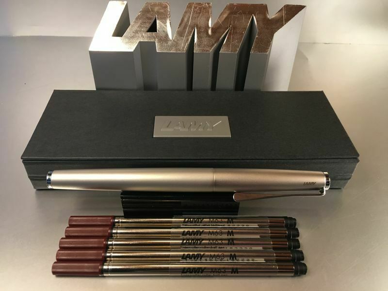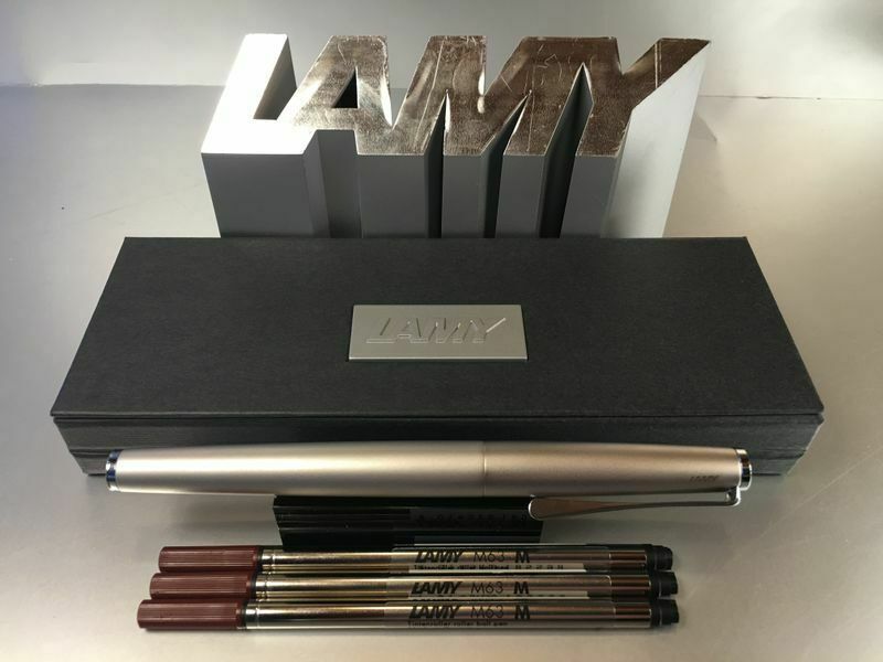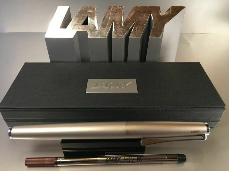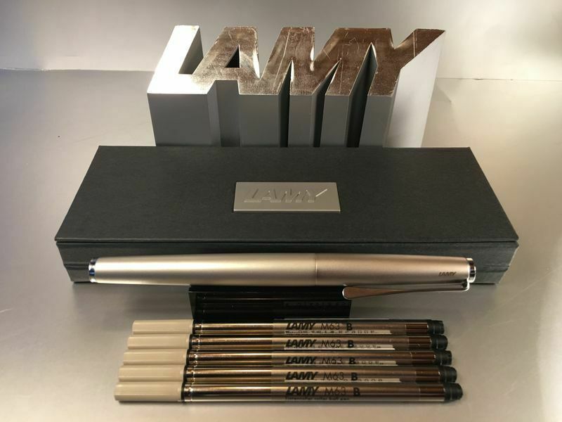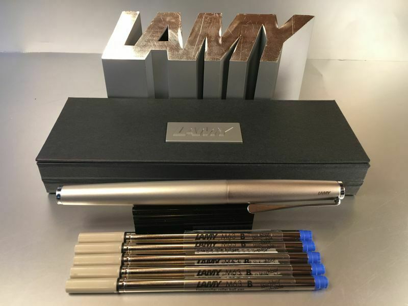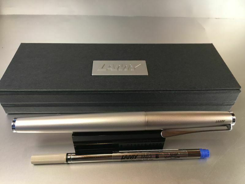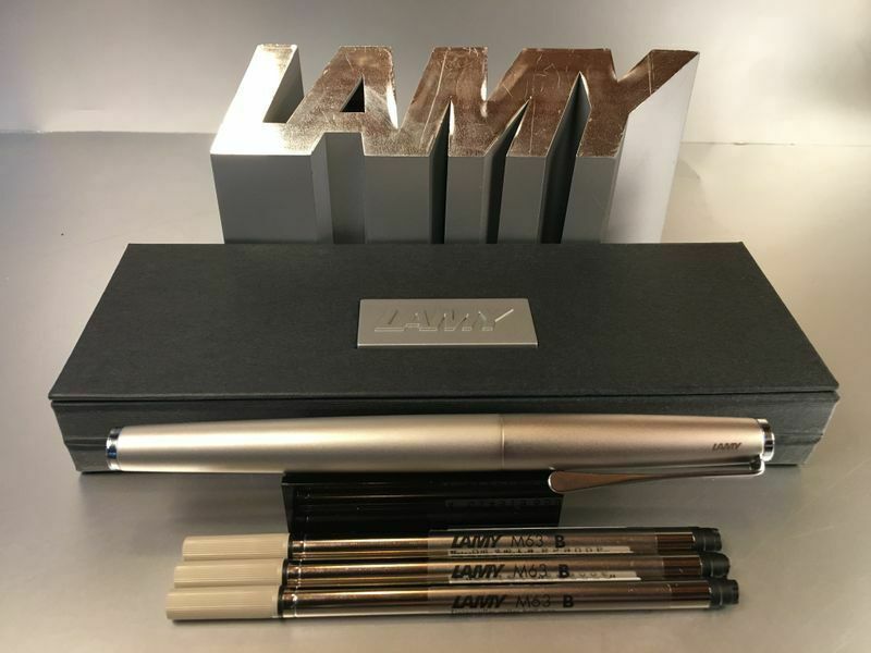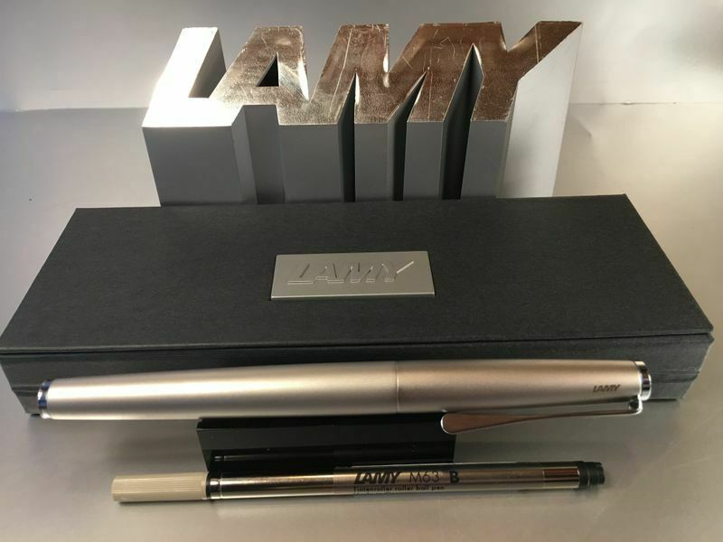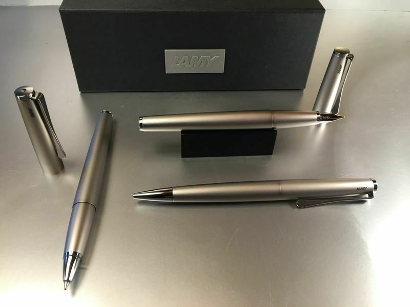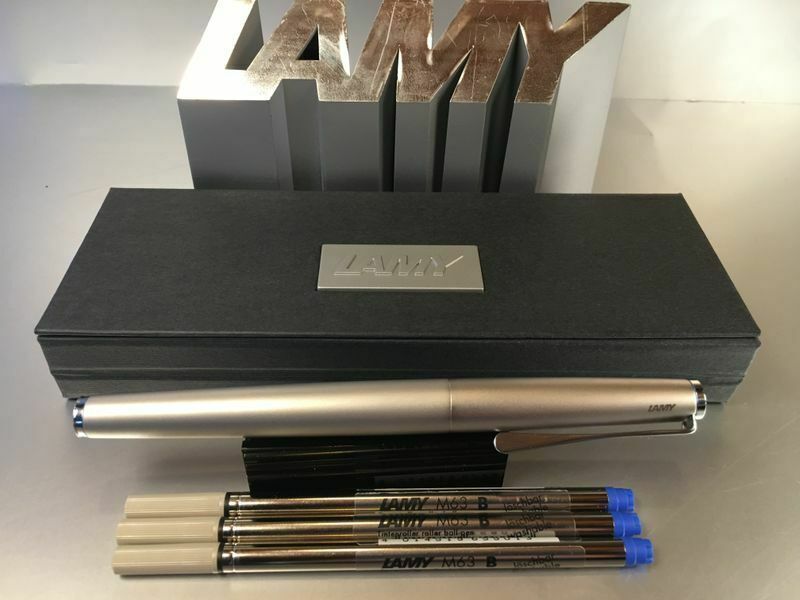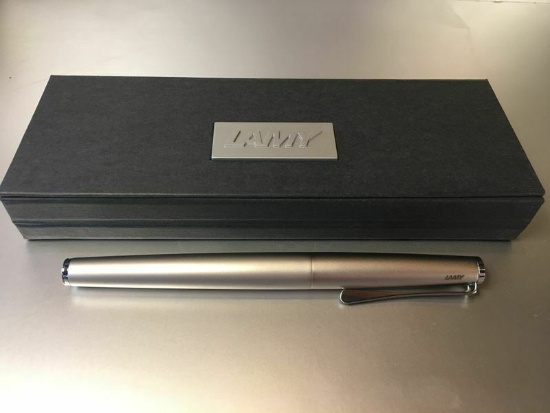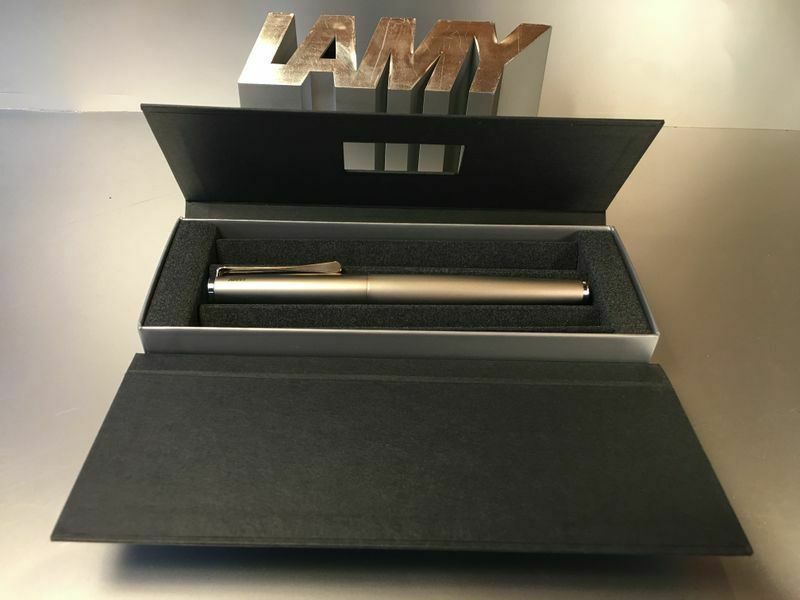 Lamy Studio Palladium Tintenroller Auch als Füllhalter und Kugelschreiber bei uns erhältlich , siehe Foto ! Produktdetails: rostfreier Edelstahl in einem hochwertigem Palladium-Finish Softlack-Finish matt türkis Clip und Griffstück hochglanz verchromt Metallclip in Propellerform Schreibstärke: M (me