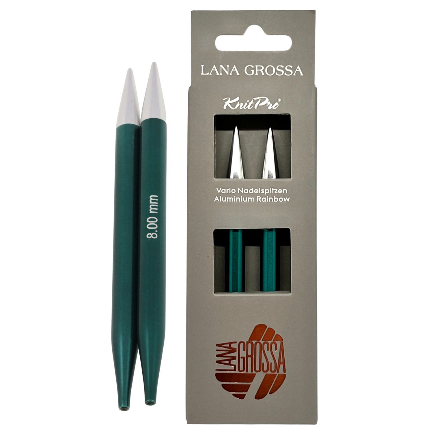austauschbare Nadelspitzen in den Stärken 3-8 mm - Exklusive Lana Grossa Nadelspitzen Vario Lang: Jetzt in schimmerndem Aluminium! Verwandle jedes Strickprojekt in ein strahlendes Meisterwerk mit den Lana Grossa Knit Pro Nadelspitzen Vario Kurz in Aluminium Rainbow . Diese eleganten, kurz konzipiert