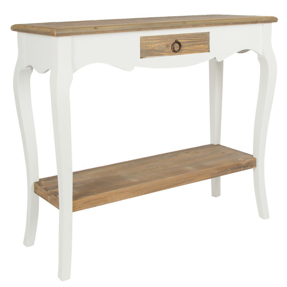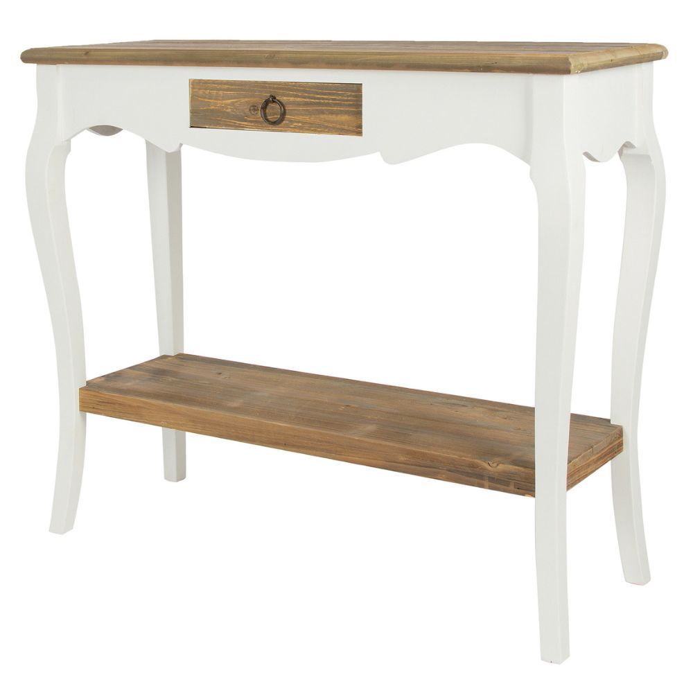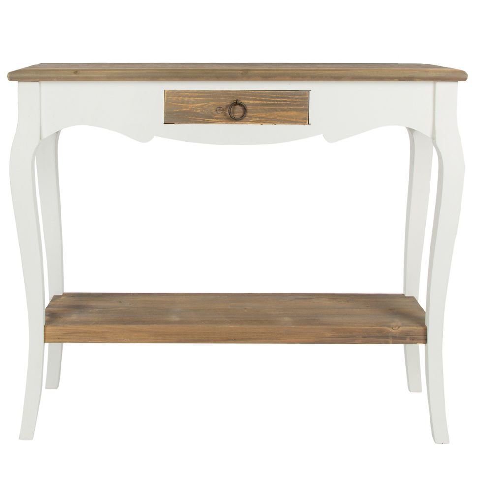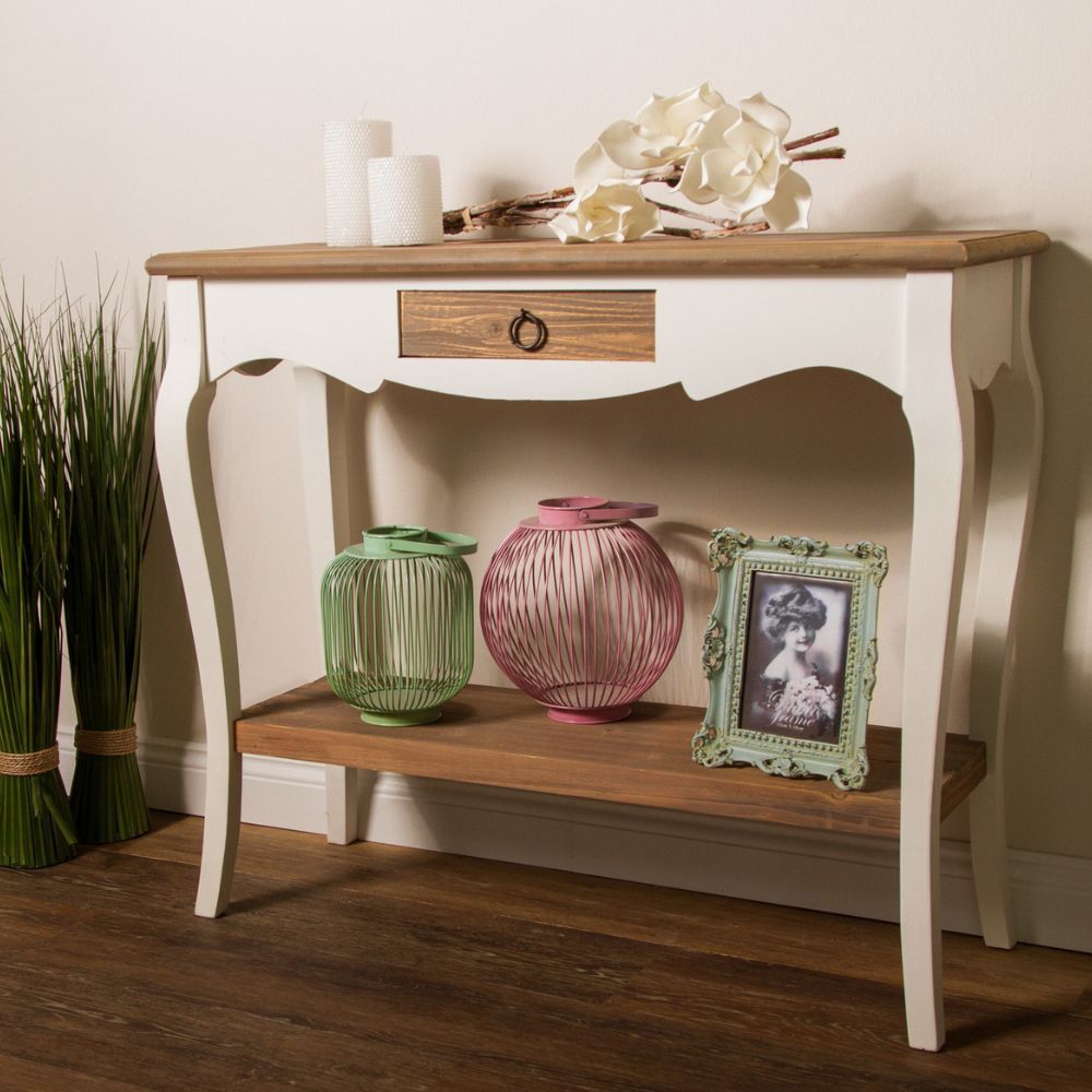 Landhaus Konsole ADRIA 90cm weiss-braun Ablage Schublade Konsolentisch