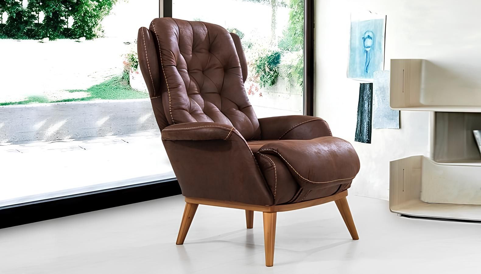 Landhaus Stil Sessel Relax Fernseher Einsitzer Sofa Couch Ohrensessel