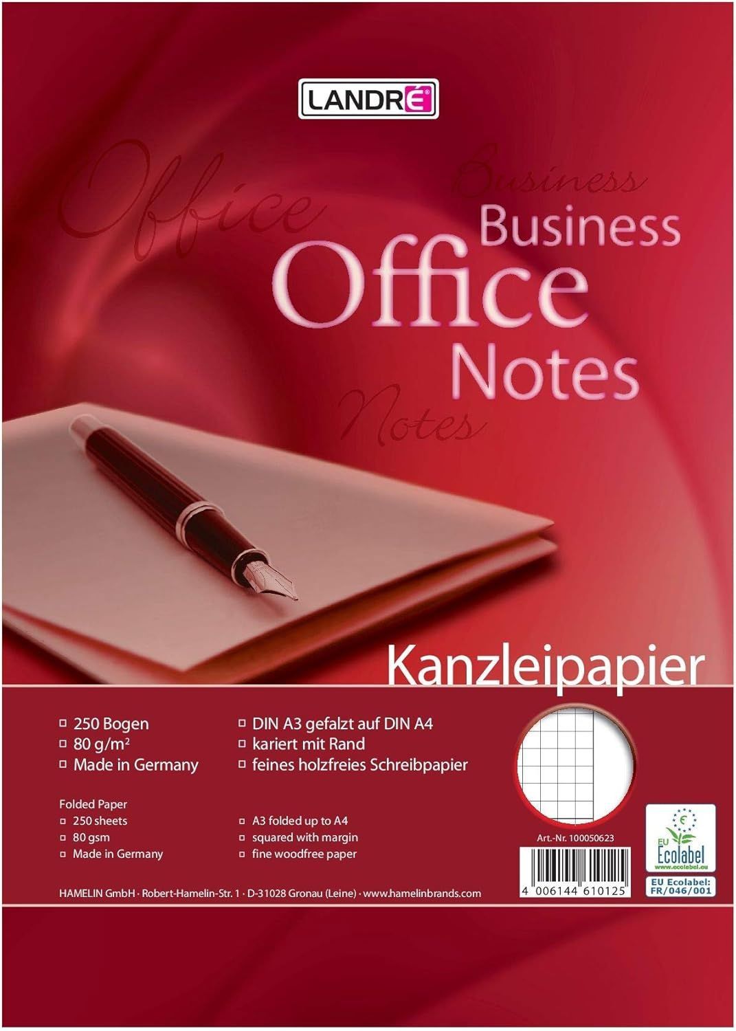 Landré Landré Kanzlei-Papier A3 auf A4 gefalzt, kariert mit Rand rechts, 80 g/m², 250 St