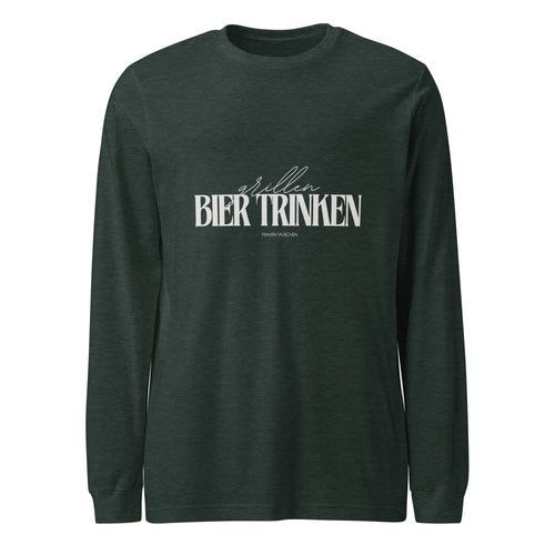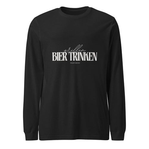 Langärmeliges Unisex-T-Shirt "Grillen, Bier trinken, Frauen tauschen" Geschenkidee fü