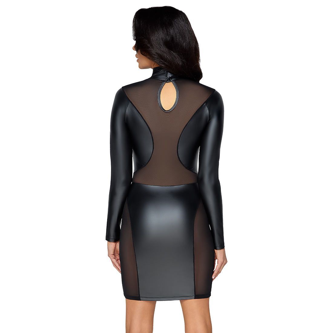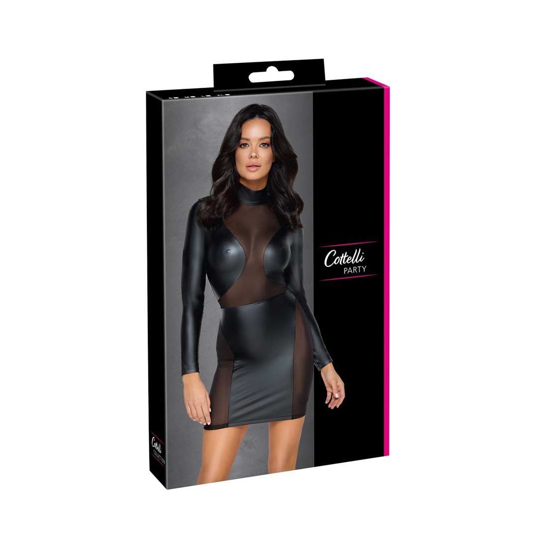 Langarm Mini-Kleid S-XL sexy matter Wetlook + transparentes Netz + Club "Mahani"