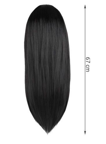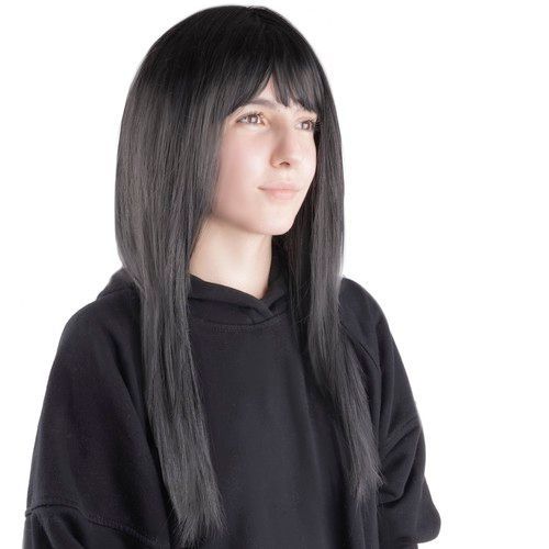 Lange Damenperücke Schwarz 67cm mit Pony Kunsthaar Perücke Universalgröße
