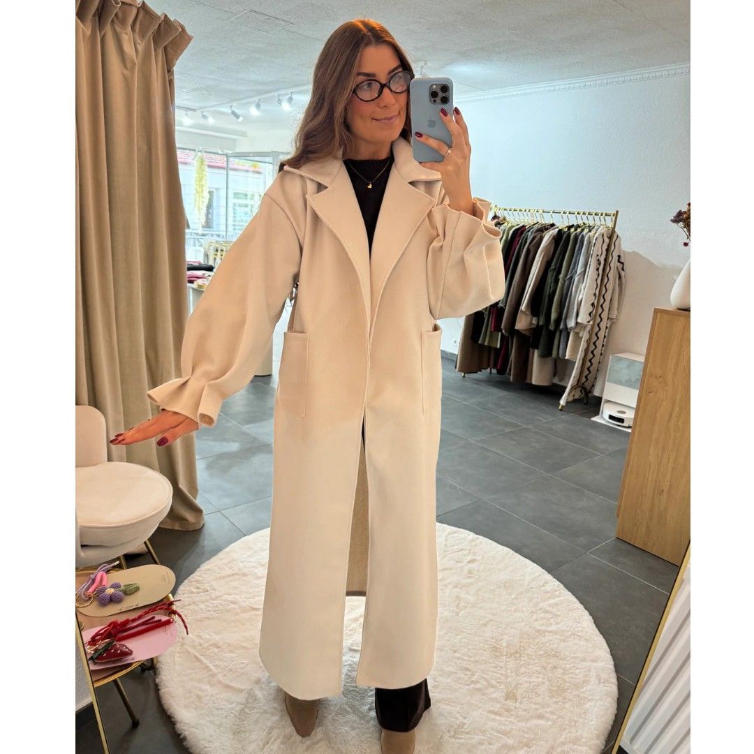 Langer Frauen Mantel MIRIAM Creme Damen Wintermantel OneSize XS-XL Frau Mäntel