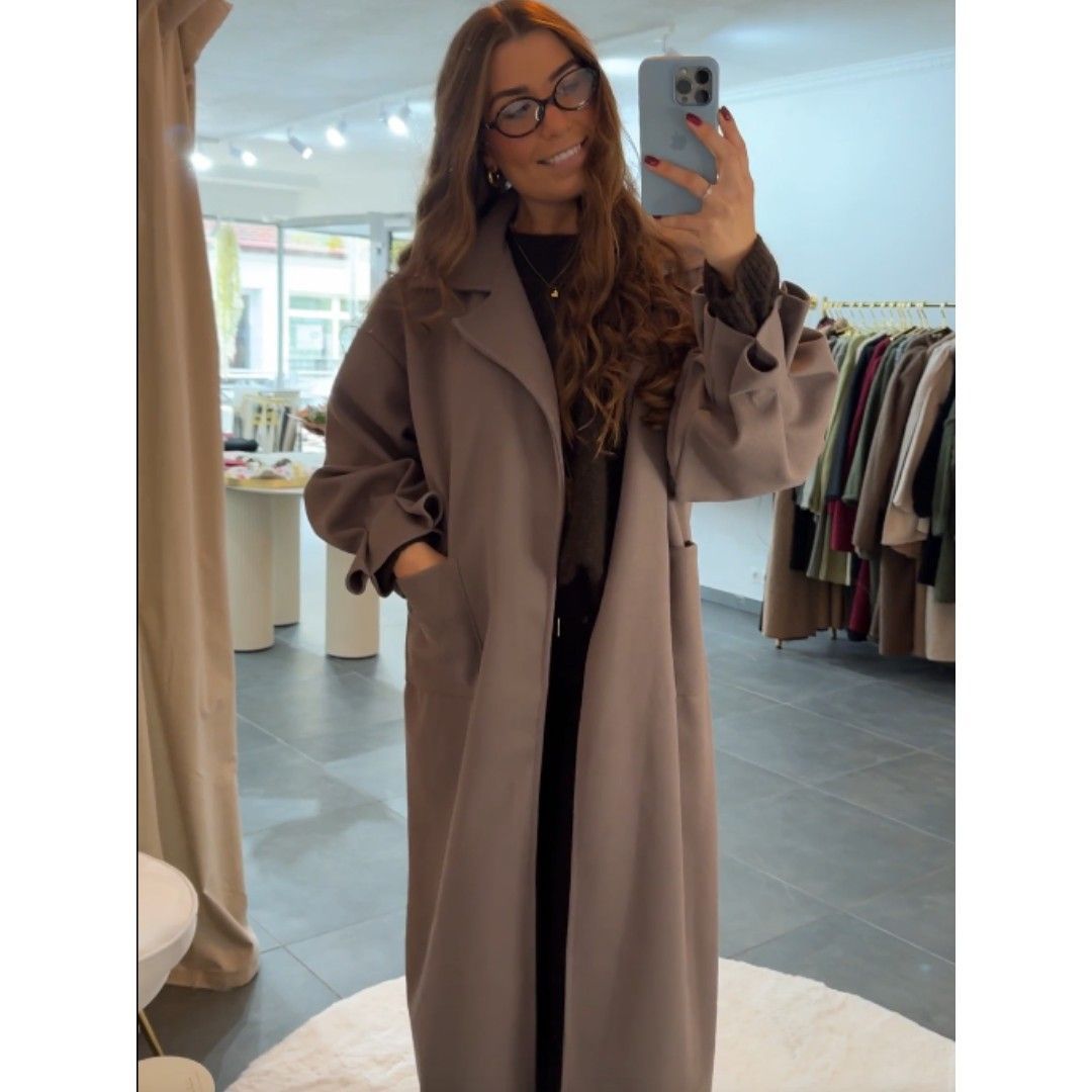 Langer Frauen Mantel MIRIAM Taupe Damen Wintermantel OneSize XS-XL Frau Mäntel