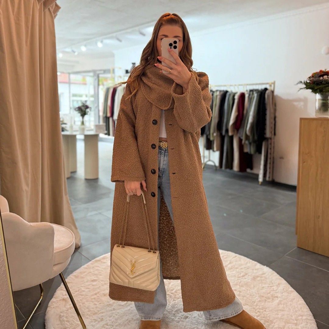 Langer Frauen Mantel PIA Braun Damen Wintermantel OneSize 125-130cm Winterjack