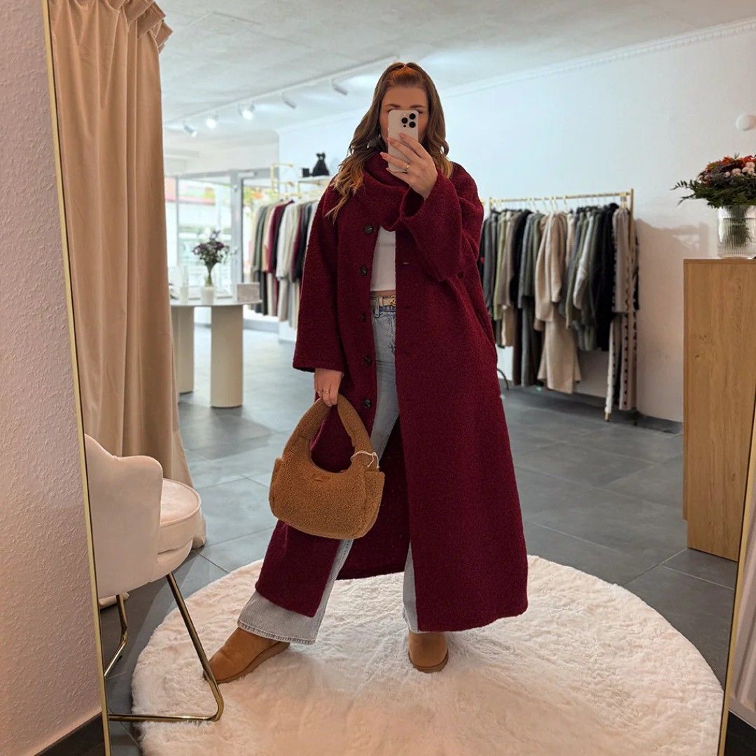 Langer Frauen Mantel PIA Weinrot Damen Wintermantel OneSize 125-130cm Winterjack