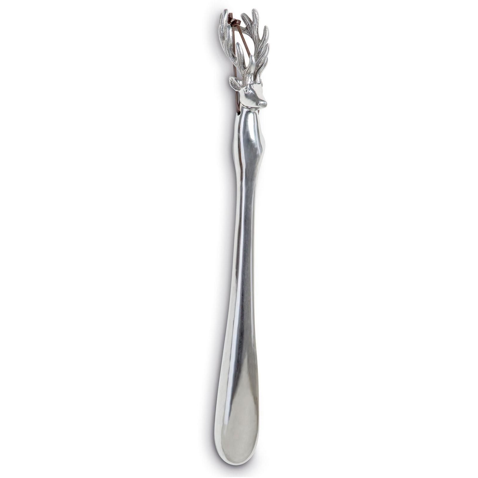 Langer Schuhlöffel 53cm Hirsch-Dekor Schuhanzieher Alu Anziehhilfe zum Aufhängen