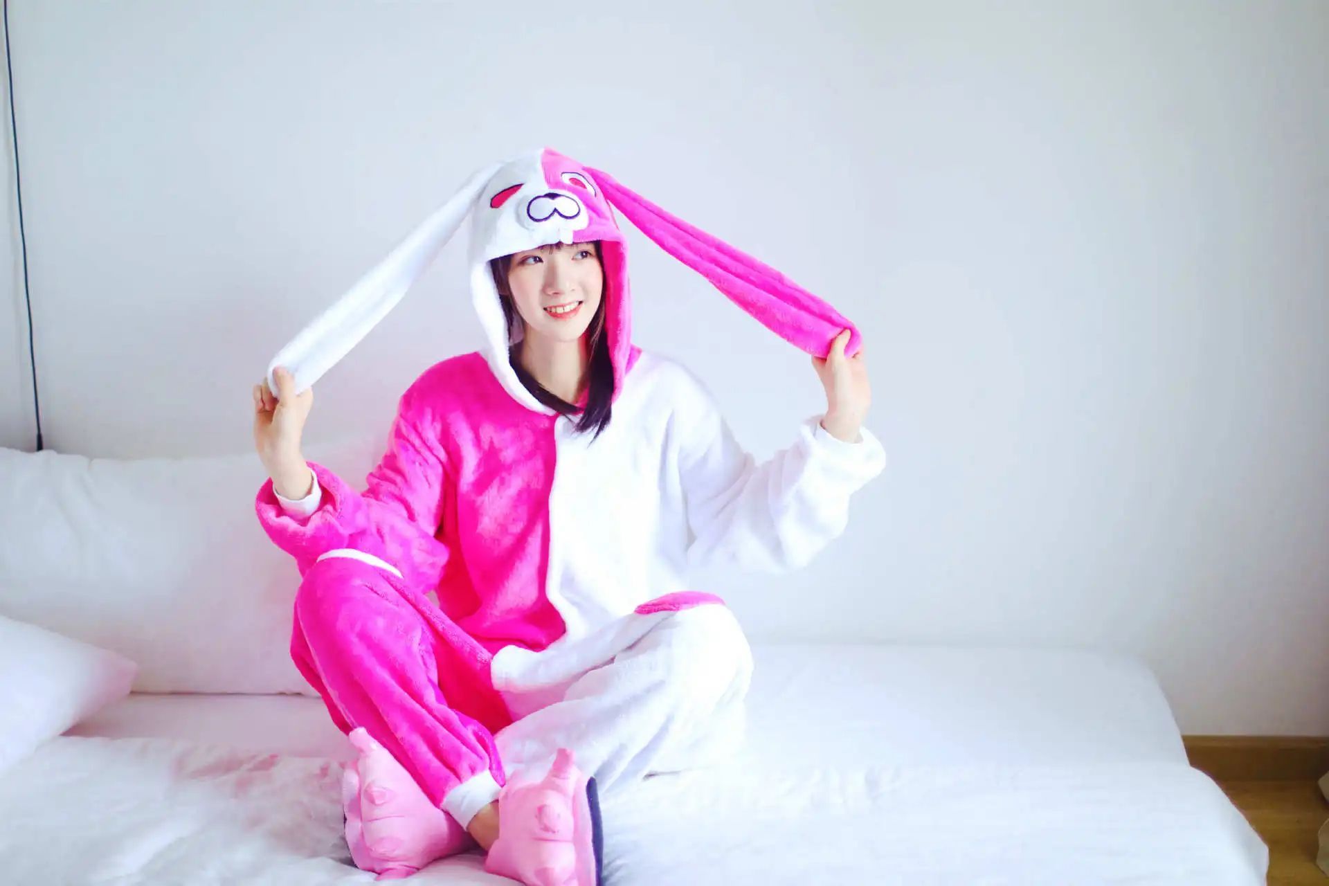 Langohren Hase Kigurumi Onesie Erwachsene Tier Cosplay Pyjamas Plusch Flanell
