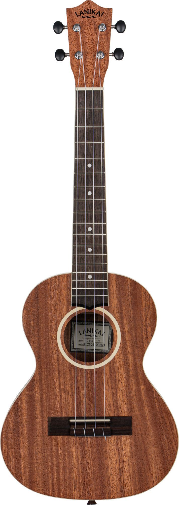 Lanikai LU21-T Ukulele Tenor Decke: Okoume Boden und Zargen: Okoume Hals: Okoume Griffbrett: Techwood Mensur: 43,0 cm Sattelbreite: 37,4 mm Sattel; Graphtech NuBone Mechaniken: schwarz, offen Saiten: Aquila 8-hole Quick tie bridge: für ein schnelles und einfaches Wechseln der Saiten 2 Gurtpins, chro