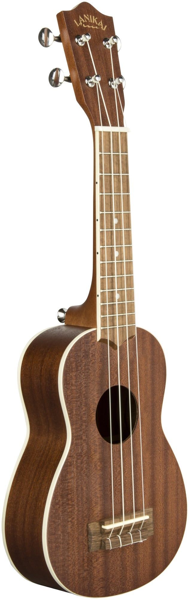 Lanikai MA-S Ukulele Sopran Mahogany Series Decke: Mahagoni Boden und Zargen: Mahagoni Hals: Okoume Griffbrett: Laurel Mensur: 34,6 cm Sattelbreite: 37,4 mm Sattel: GraphTech NuBone XB Inlays: White Dot Mechaniken: Offen, verchromt Stegeinlage: GraphTech NuBone XB Saiten: D'addario EJ88 Farbe: Natur