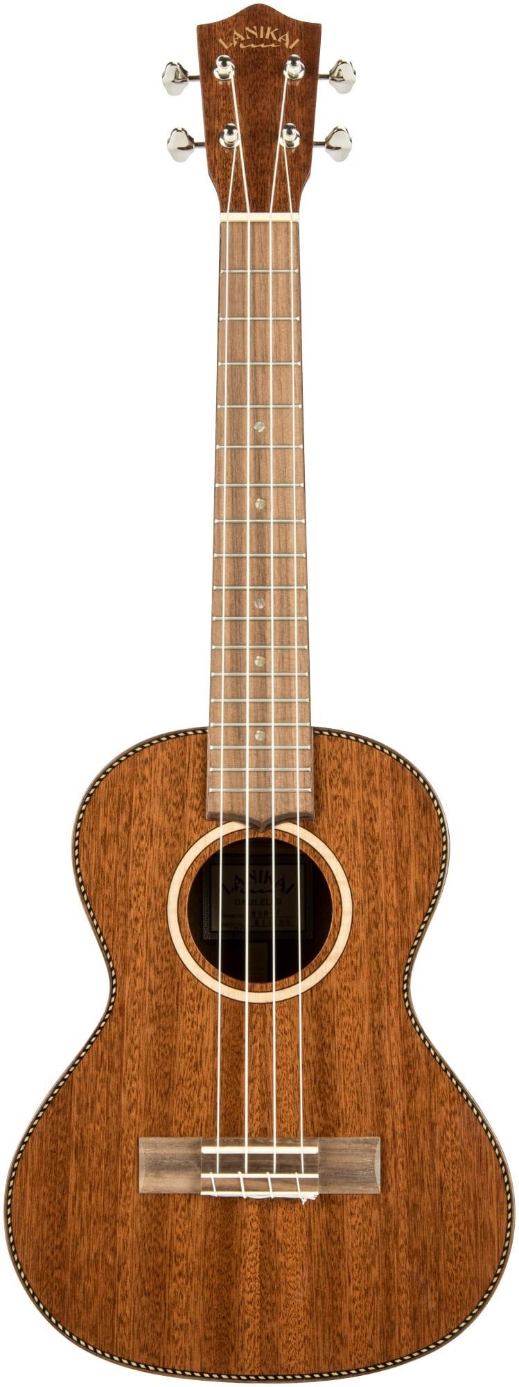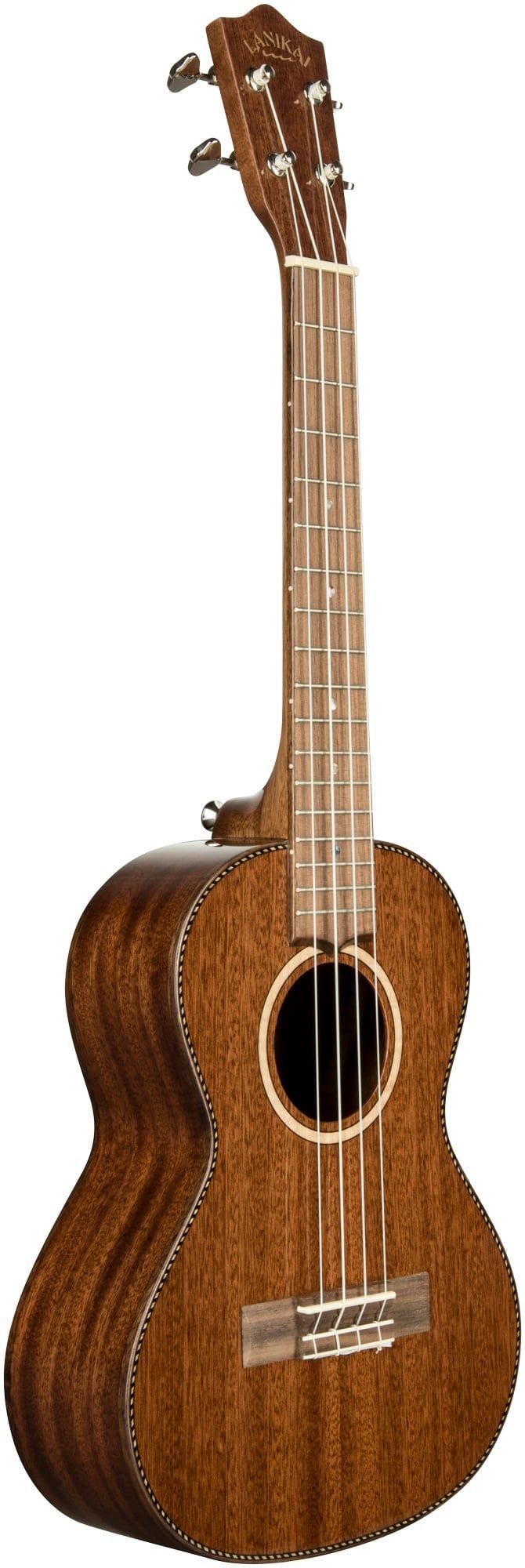 Lanikai MAS-T Ukulele Tenor Decke, Boden und Zargen: Mahagoni, massiv Hals: Okoume Griffbrett: Laurel Mensur: 43,2 cm Sattelbreite: 37,4 mm Sattel: GraphTech NuBone XB Inlays: White Dots 18 Bünde Mechaniken: Grover, vernickelt Saiten: D'Addario EJ88T Farbe: Natur, Hochglanz inkl. Softcase