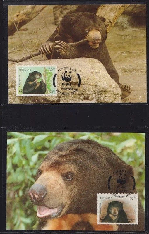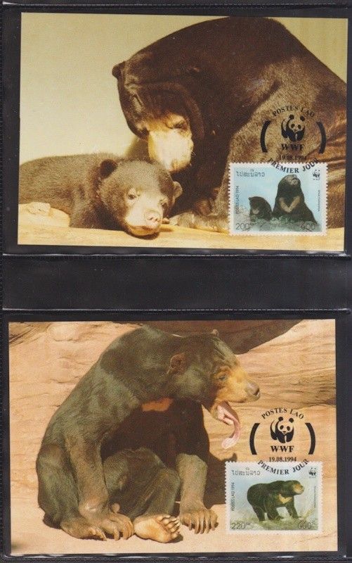 Laos 1994 Maximumkarten MiNr. 1410-1413 WWF Weltweiter Naturschutz Malaienbär