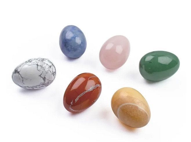 Lapis Vitalis - Geschenkset Edelstein-Eier (6 St. in Box) Geschenkset mit sechs Edelsteineiern in den beliebten Steinsorten grüner Aventurinquarz, Blauquarz, Orangencalcit, weißer Magnesit, Rosenquarz und roter Jaspis.