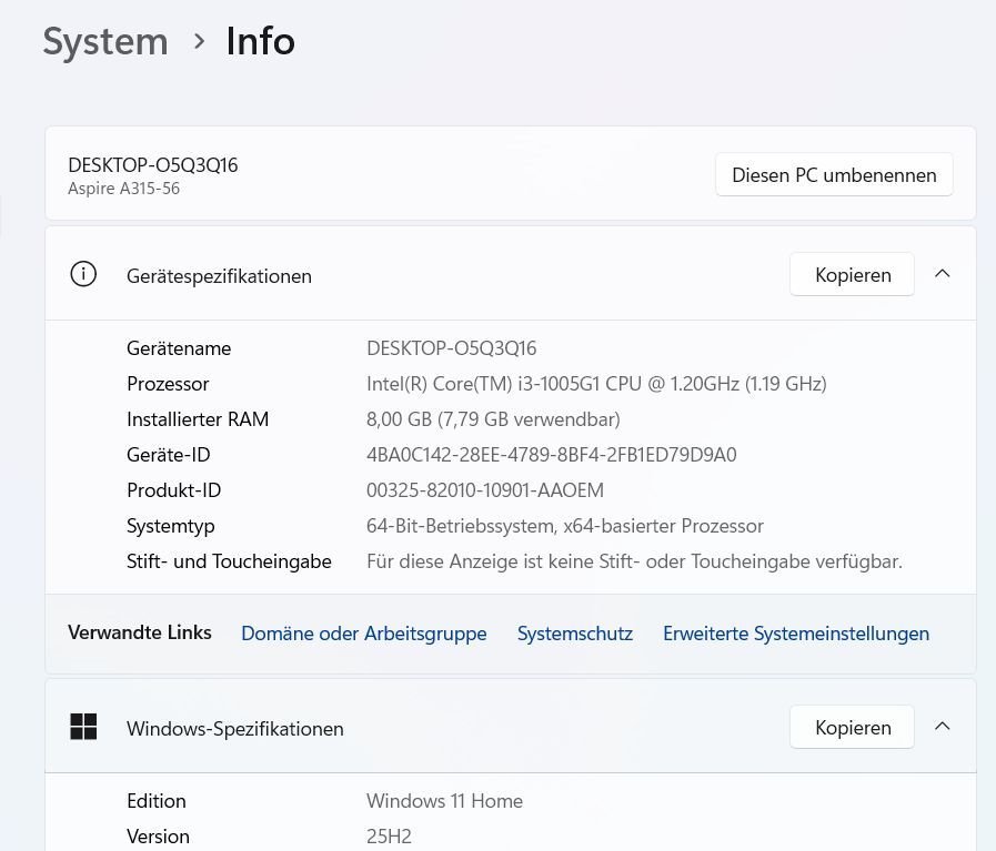 Laptop Acer Aspire 3 A315-56 15,6 FHD 256GB SSD Intel i3-1005G1 8GB RAM - Gebrauchte Hardware Unser Shop Kategorien Mainboards Smartphones Akkus RAM CPUs Displays Tastaturen Ladegeräte Grafikkarten Gehäuse Dockingstation HDD SSD DVD Kabel Zubehör Produktbeschreibung Technische Daten und Spezifikatio