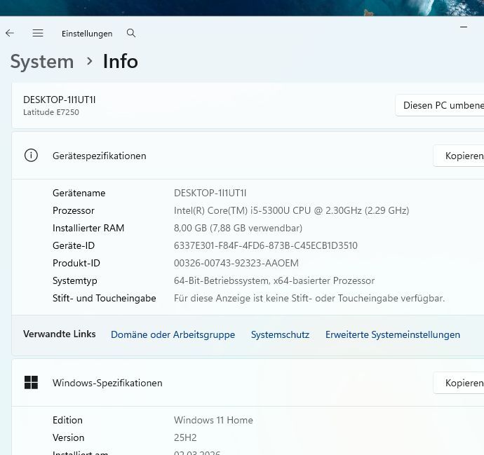Laptop Dell Latitude E7250 12,5'' 256GB SSD Intel Core i5-5300U 8GB RAM - Gebrauchte Hardware Unser Shop Kategorien Mainboards Smartphones Akkus RAM CPUs Displays Tastaturen Ladegeräte Grafikkarten Gehäuse Dockingstation HDD SSD DVD Kabel Zubehör Produktbeschreibung Technische Daten und Spezifikatio