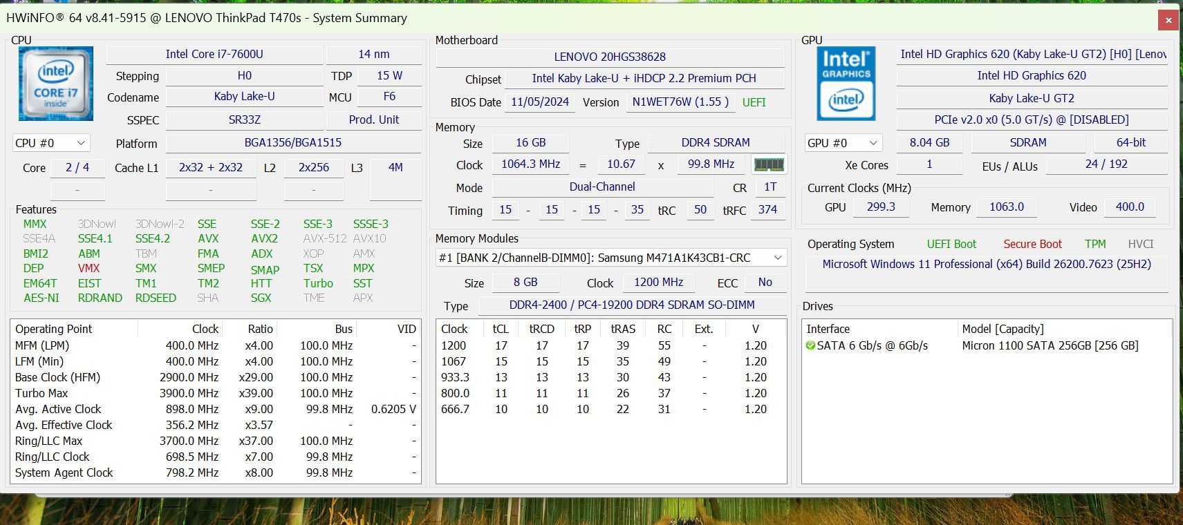 Laptop Lenovo ThinkPad T470s FHD 14 Zoll 256GB SSD Intel Core i7-7600U 16GB RAM