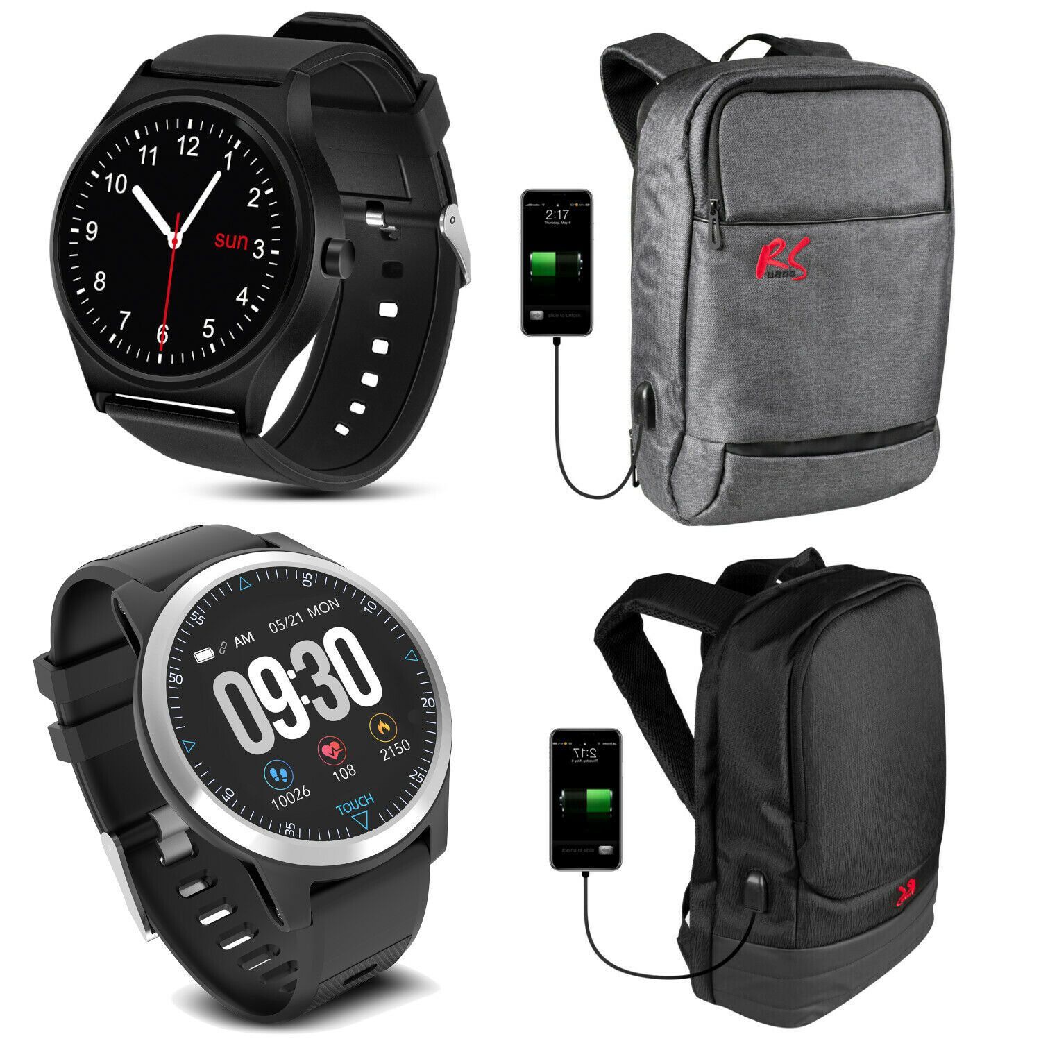 Laptop Schule Reise Rucksack mit Smartband Fitness Tracker Pulsuhr Armbanduhr