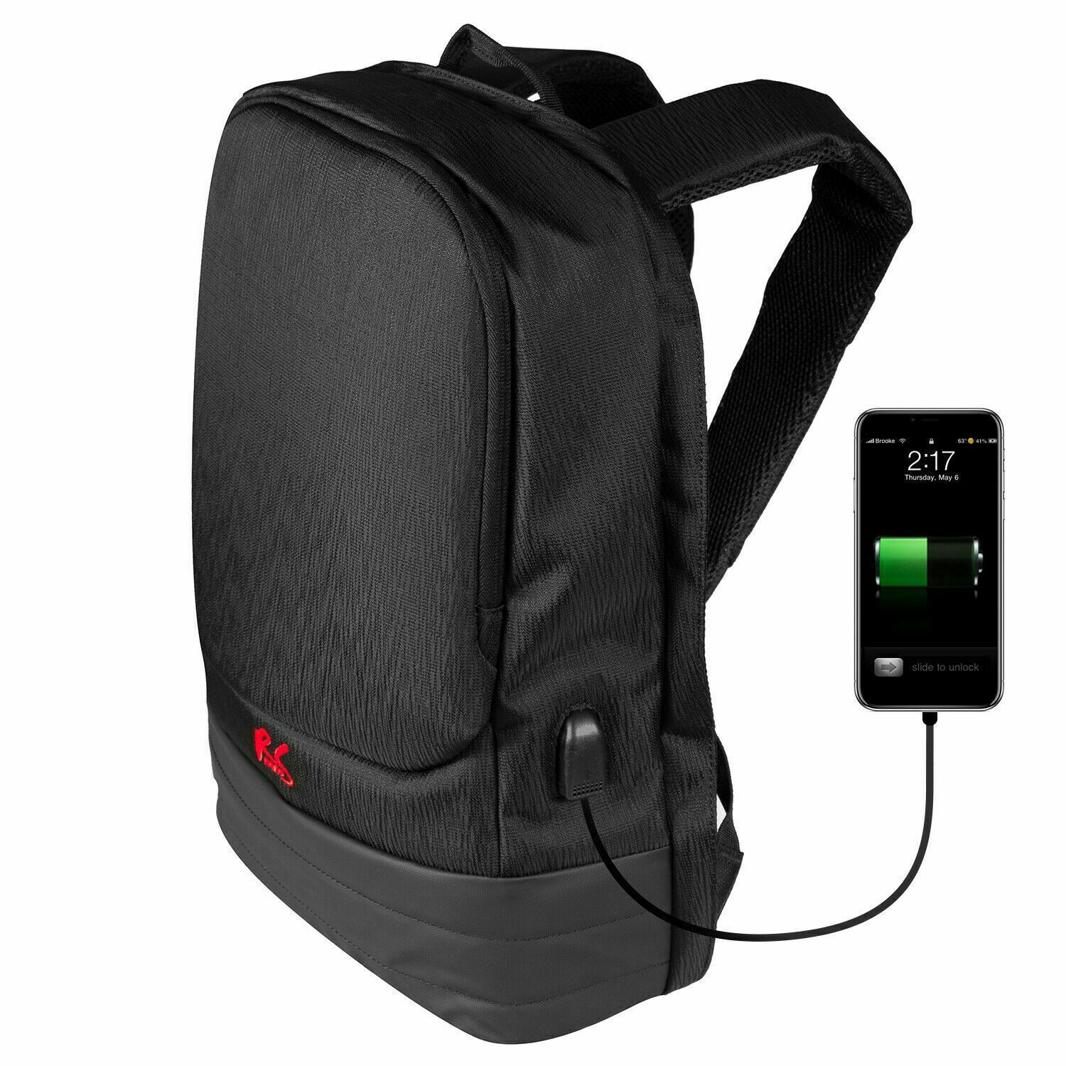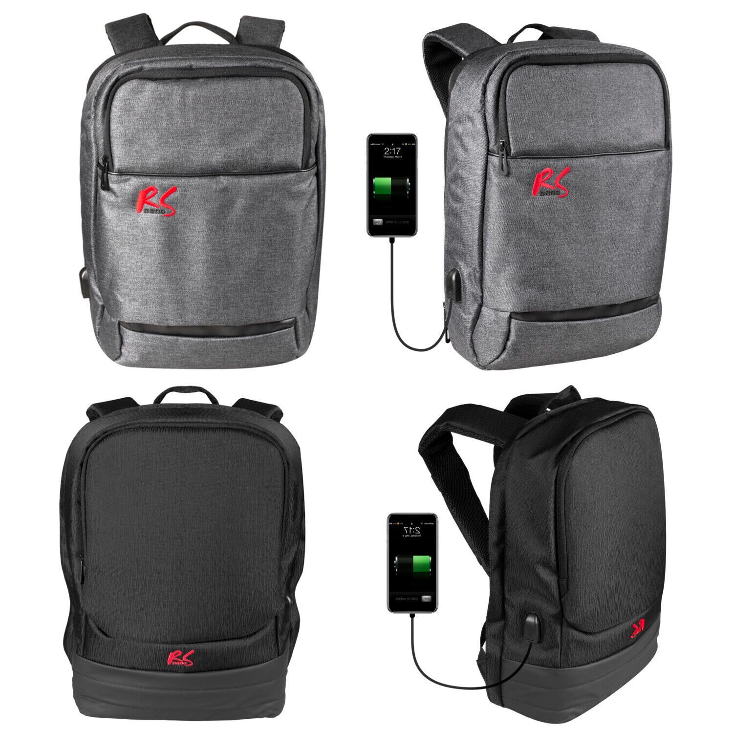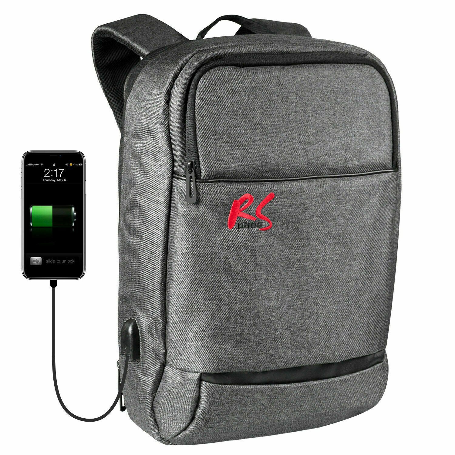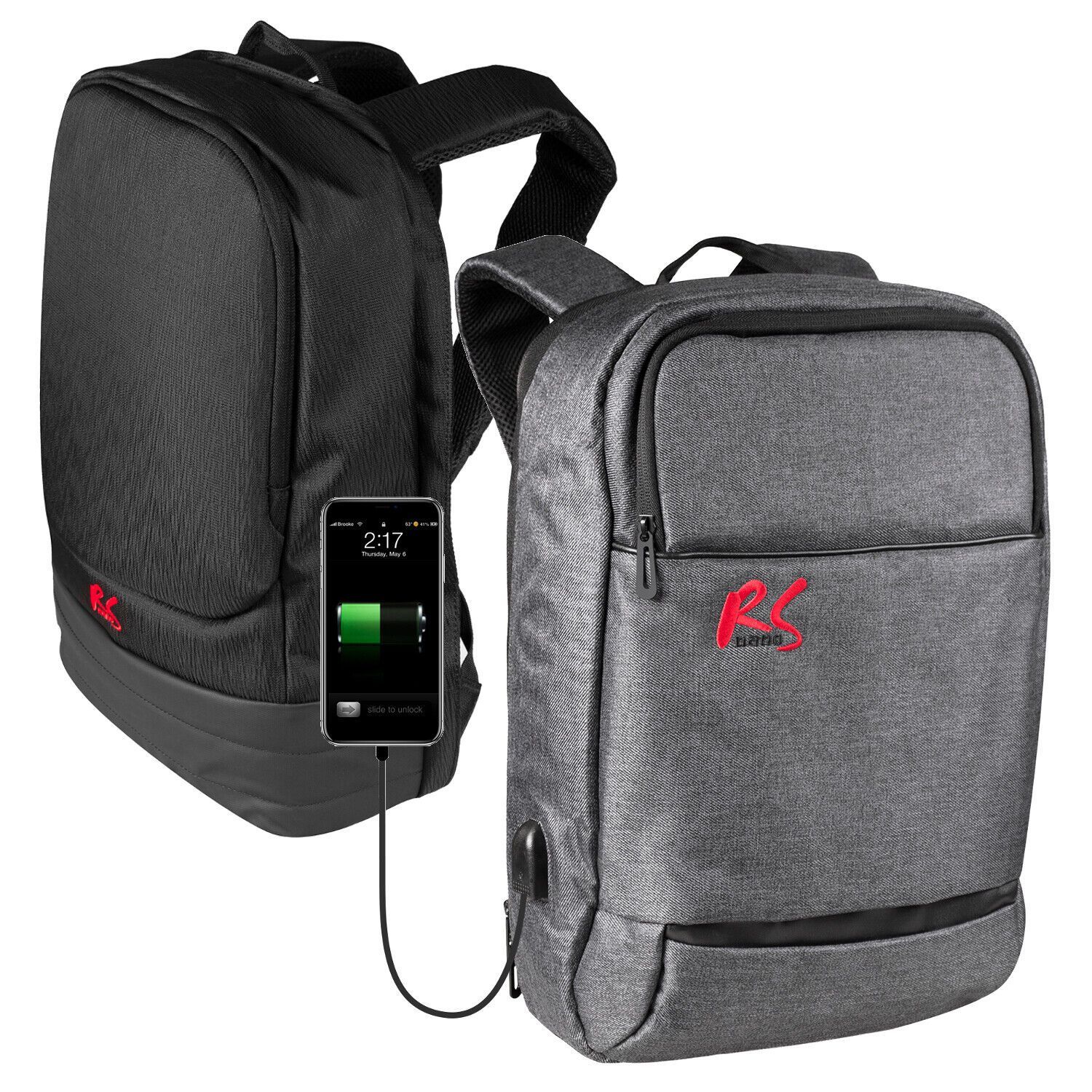 Anti-Diebstahl-Schutz Euro USB-Ladeanschluss Euro WasserfestEuro - Rucksack mit USB-Ladeanschluss Inklusive Smartband Fitness Tracker als passende Ergänzung - Anti-Diebstahl Verschluss , große Haupttasche u. Vordertasche- Sichere Platzierung bis zu 15,6 Zoll Laptop und Tablets - Mit USB Lademöglichk