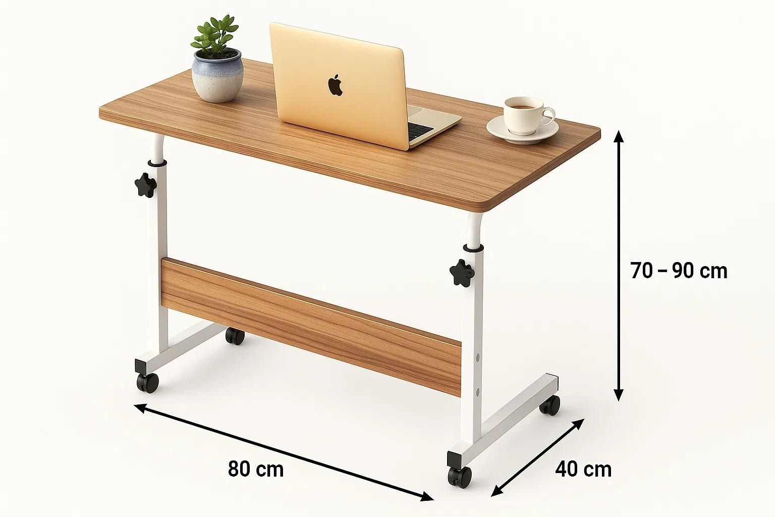 Laptoptisch Höhenverstellbarer Tisch mit Rollen - 80×40 cm - für Bett & Sofa