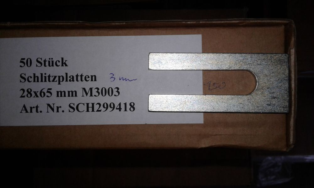 Laschen, Distanzplatten mit Schlitz aus Stahl verzinkt 3mm ,10 Stück