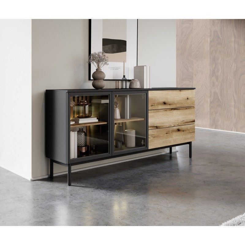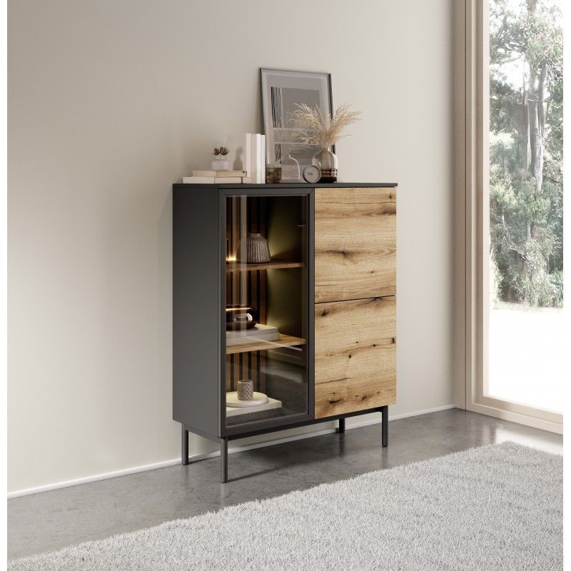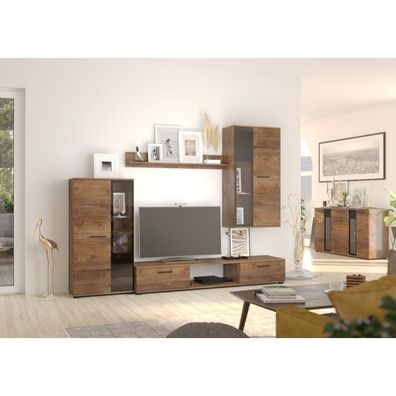 Madi Wohnzimmermöbel-Set mit Vitrine artisan + anthrazit