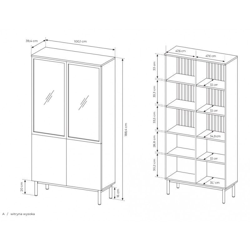 Vitrine LAMELO LA4, Standvitrine, Wohnzimmermöbel, Stauraum