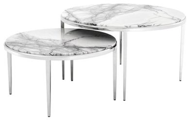 Casa Padrino Luxus Wohnzimmer Beistelltisch Set Silber / Gold - Wohnzimmermöbel
