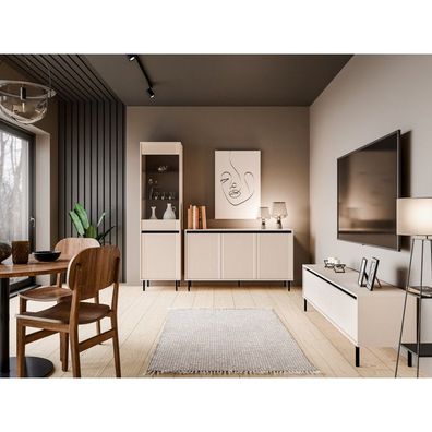 Kaja Wohnzimmermöbel-Set Kaja beige sand modern gefräste Fronten