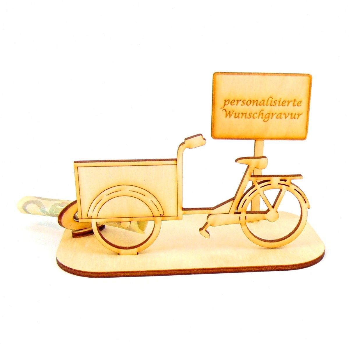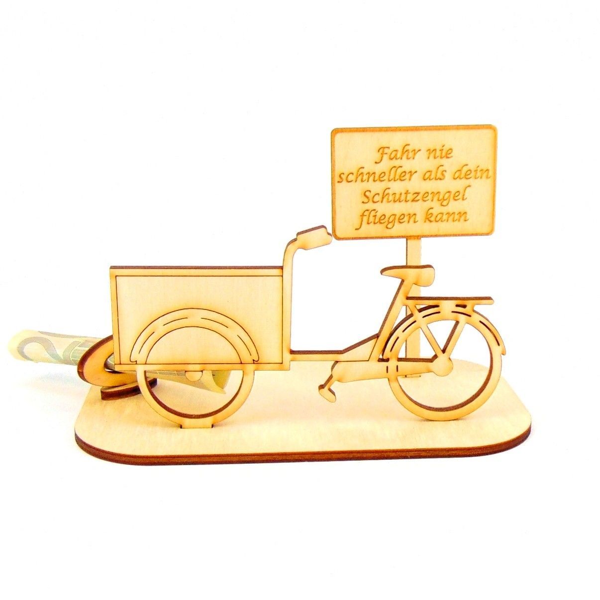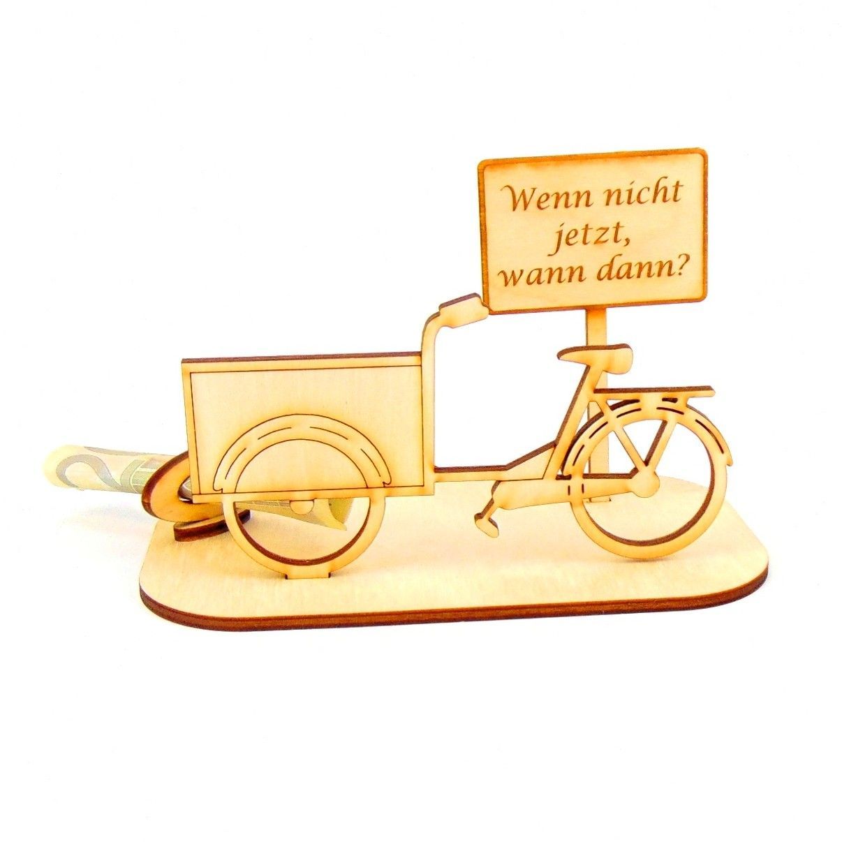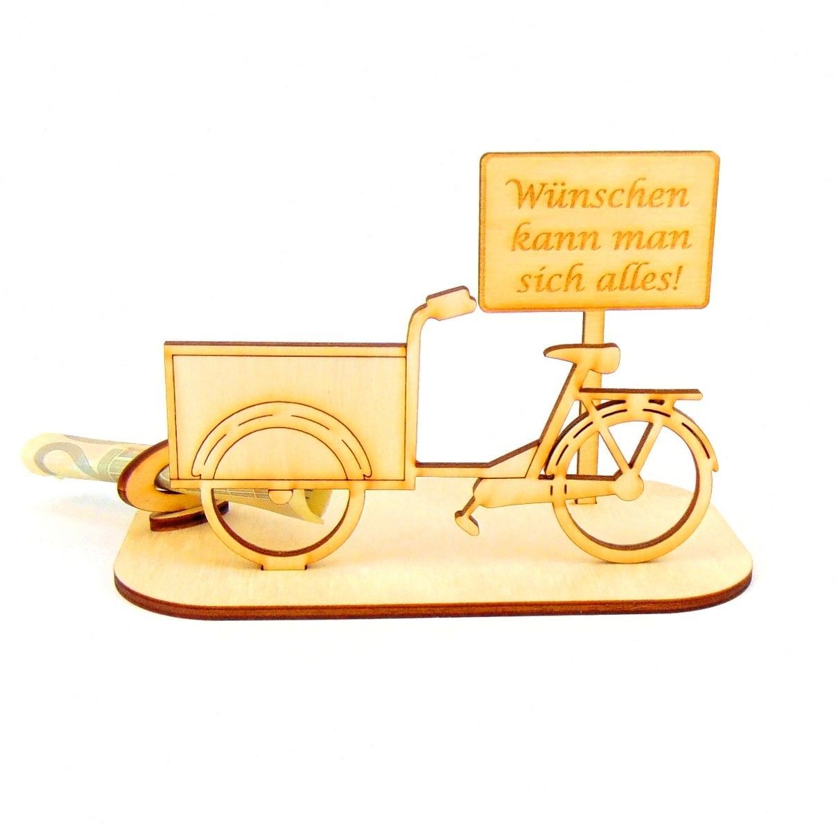 Lastenfahrrad Geld und Gutschein Geschenk aus Holz " Sprüche " Personalisiert-K65-