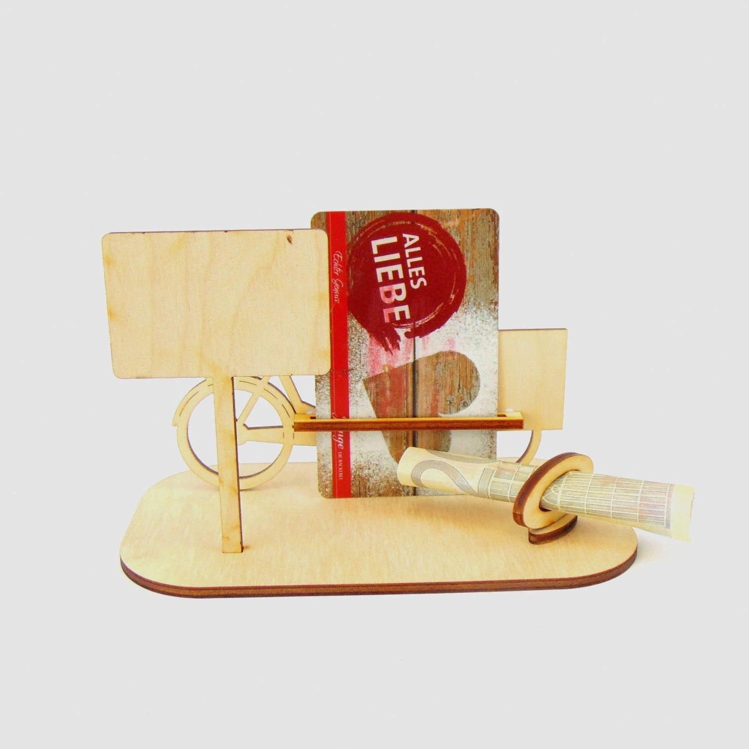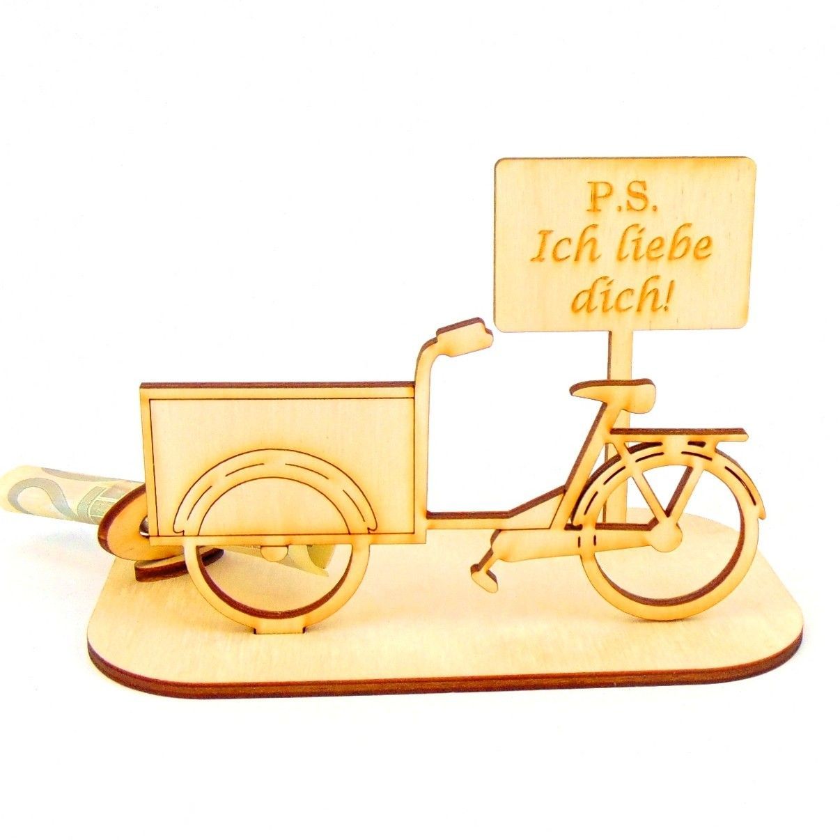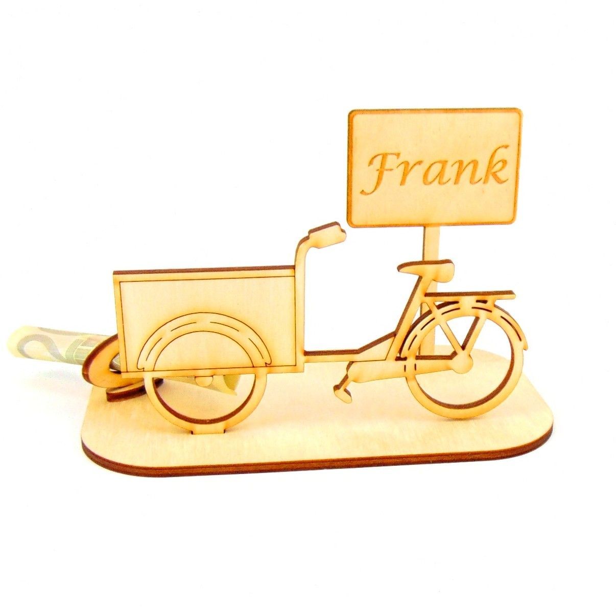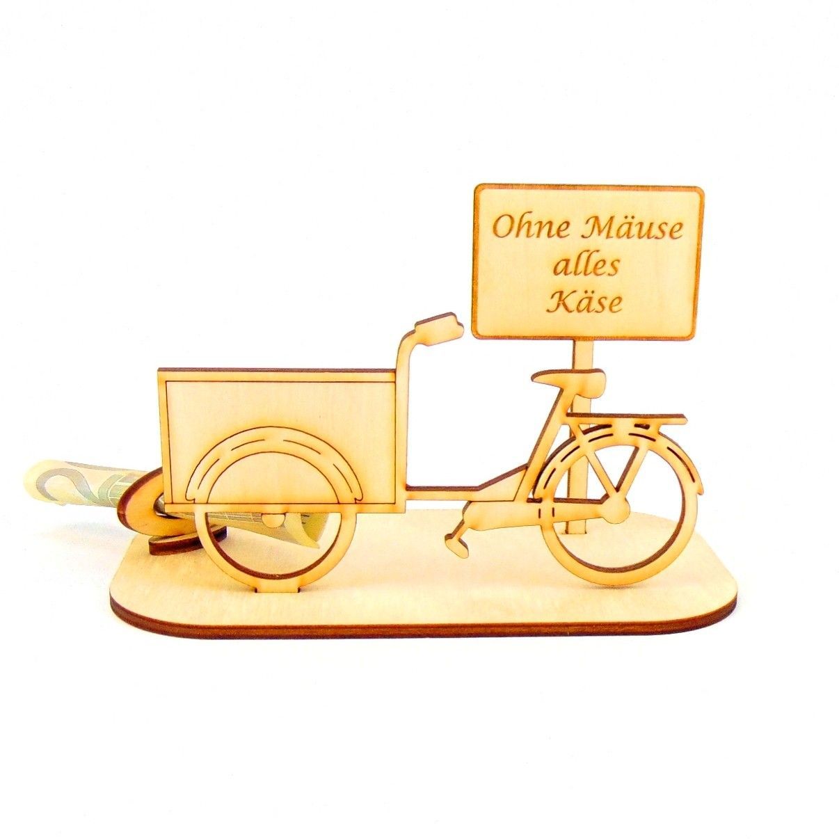 Lastenfahrrad Geld und Gutschein Geschenk aus Holz " Sprüche " Personalisiert-K65-