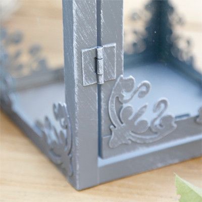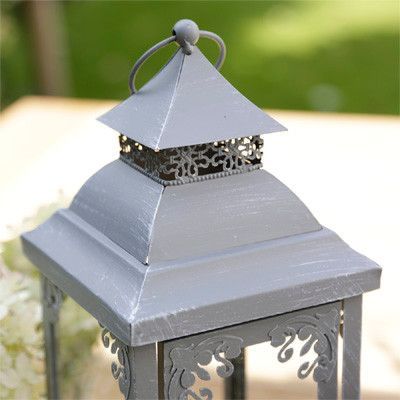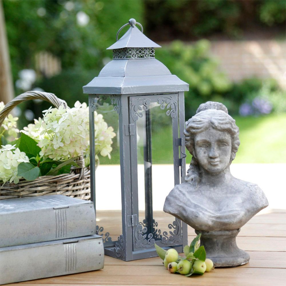 Laterne Brienne grau aus Metall mit Verzierungen Landhausstil shabby chic