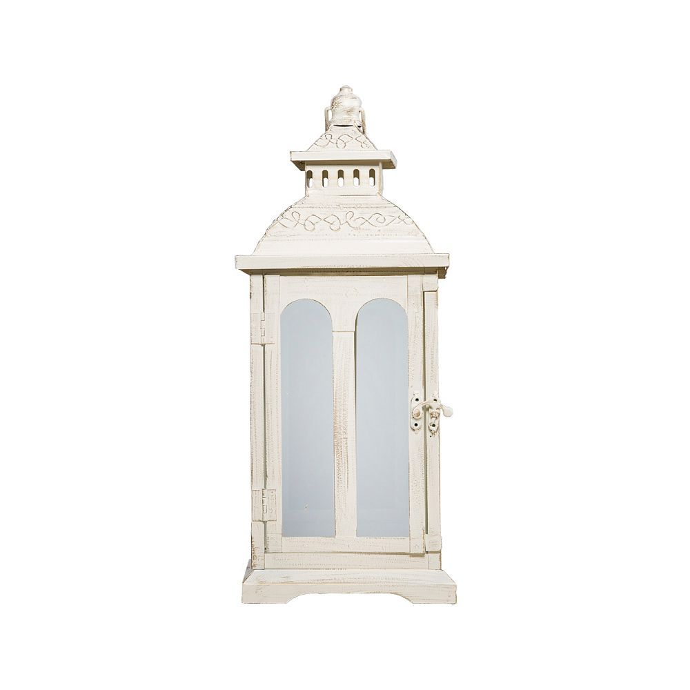 Laterne Country creme weiß aus Metall mit Rundbogenfenstern H43cm - MITTEL