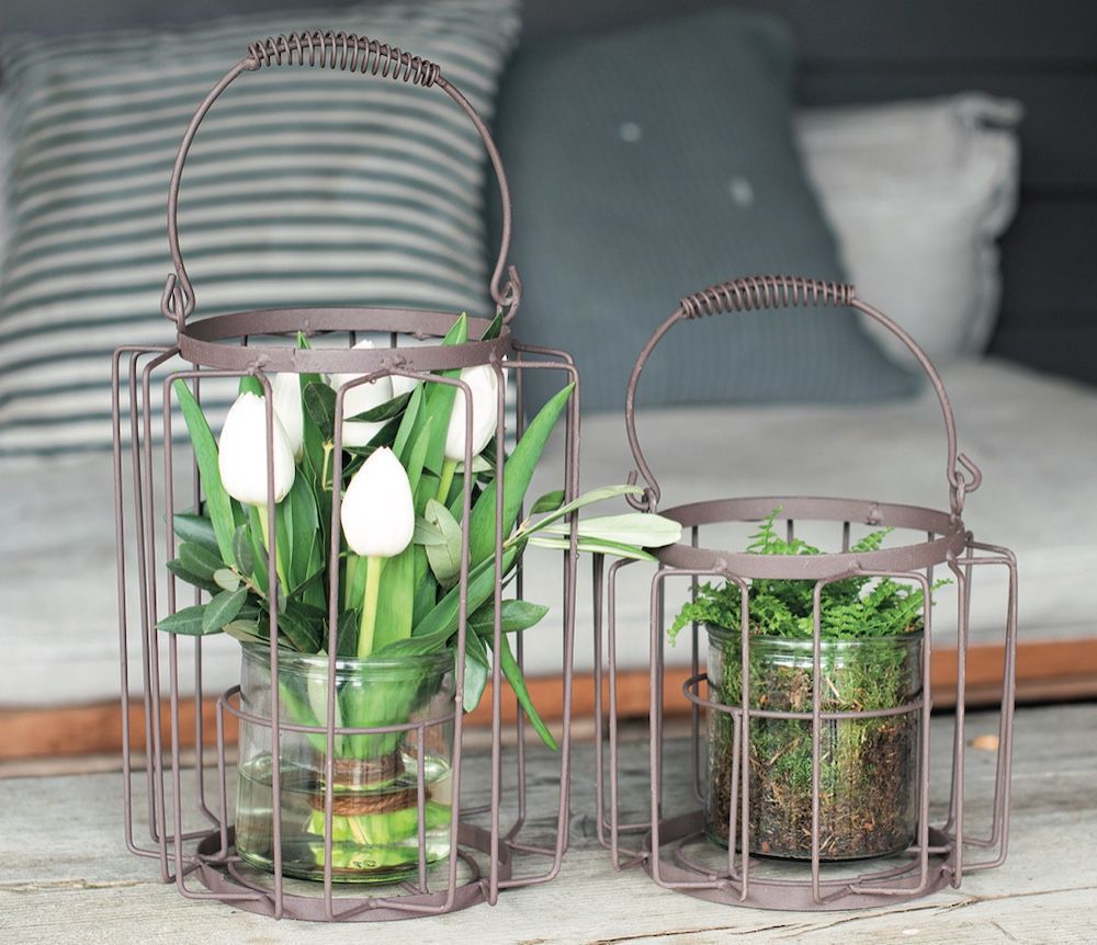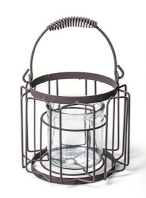 Laterne Drahtgeflecht Rund Glaseinsatz Farbe Braun Deko Terrasse Garten H.17cm