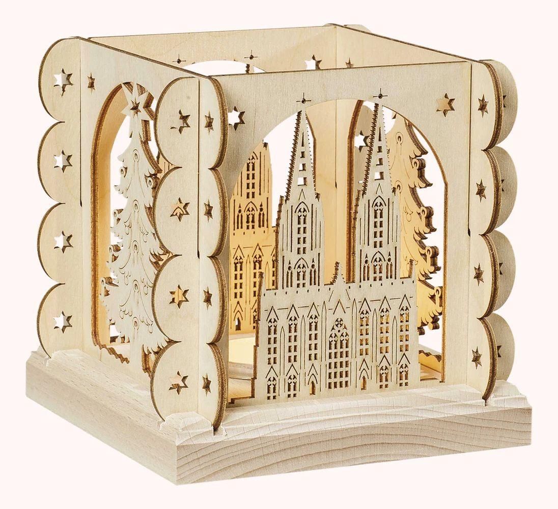 Laterne "Köln" Teelicht natur BxHxT 12x12x12cm NEU Holzlaterne Windlicht Tisc