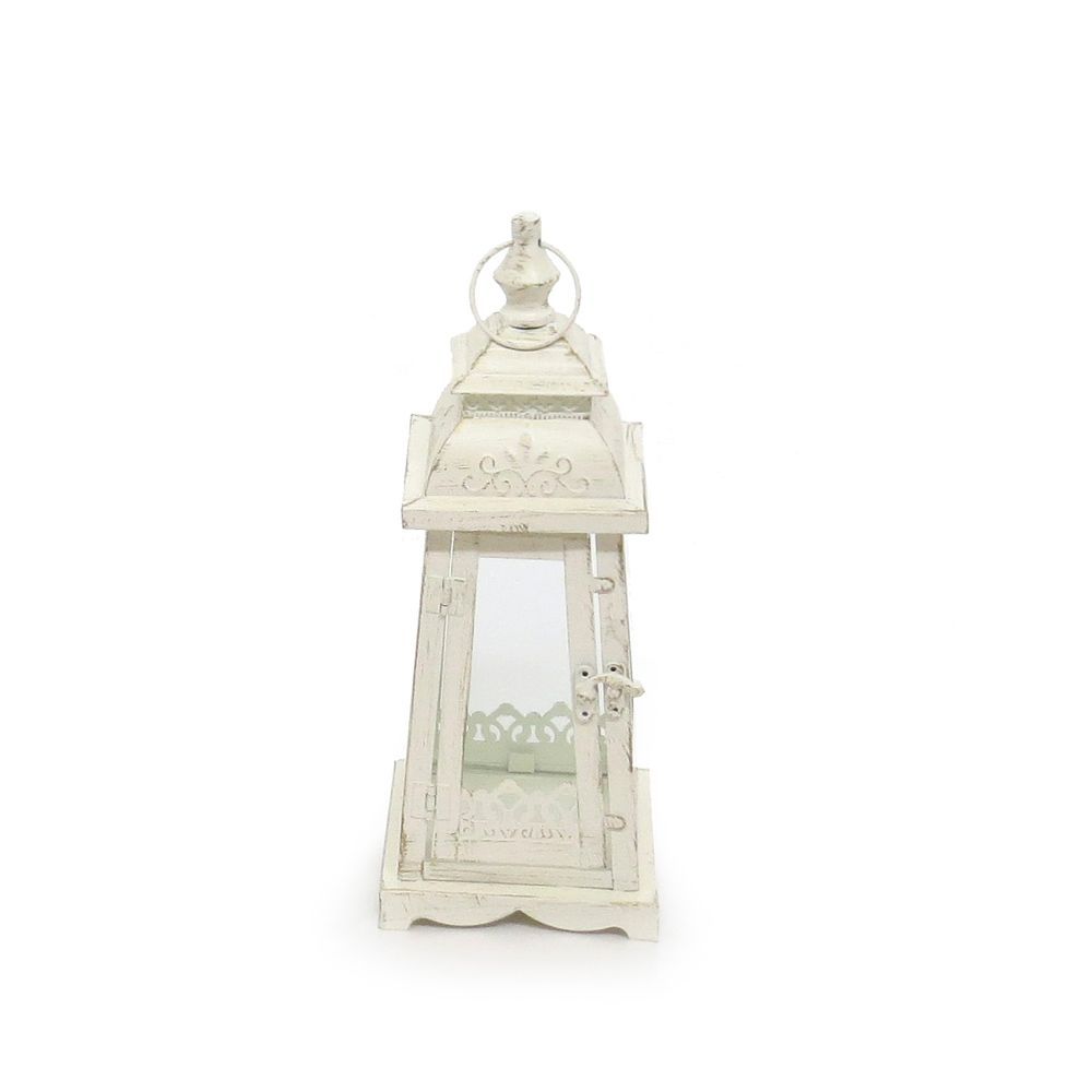 Laterne LUGANO creme weiß antik aus Metall Ornament verziert - KLEIN