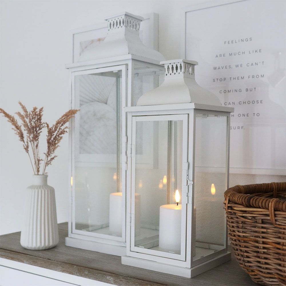 Laterne Marseille weiß aus Metall H55cm Metalllaterne Landhaus modern - GROSS